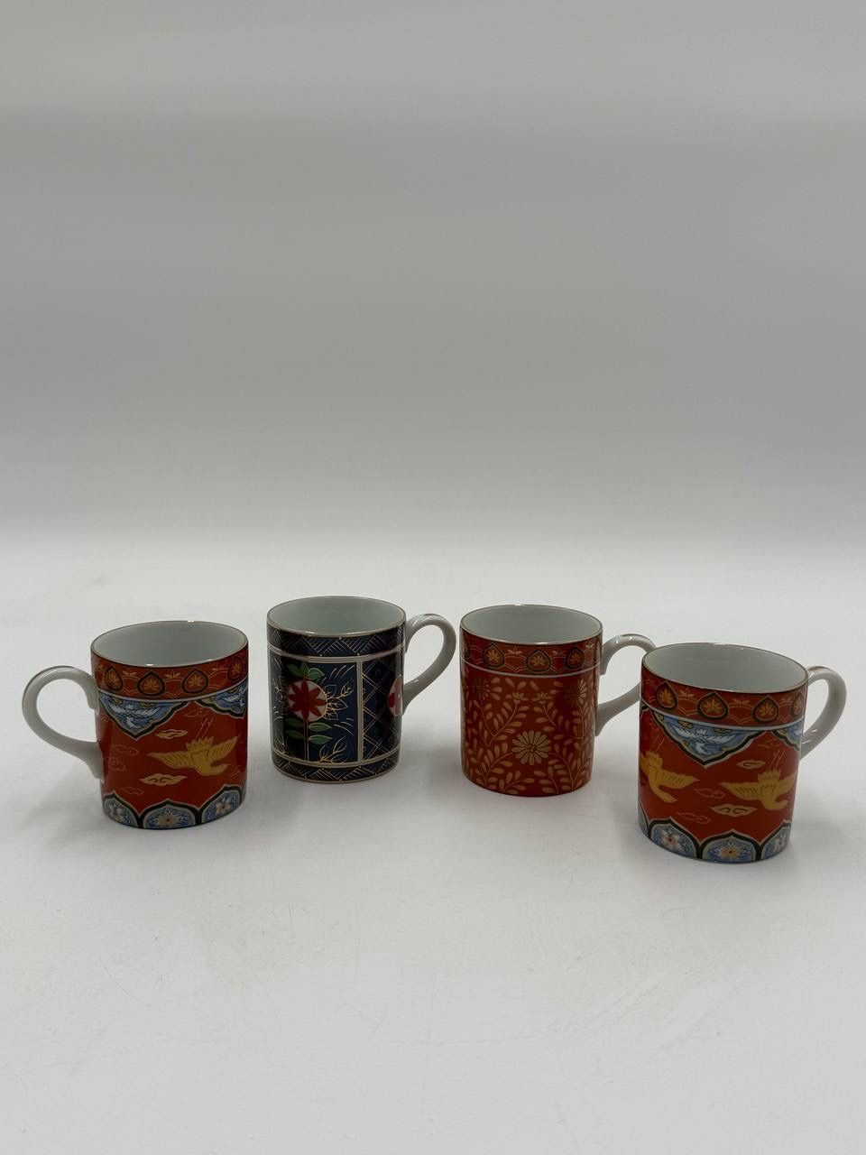 Neiman Marcus Mugs Imari Style Coffee Tea Vintage Set of 4 Porcelain Gold Trim