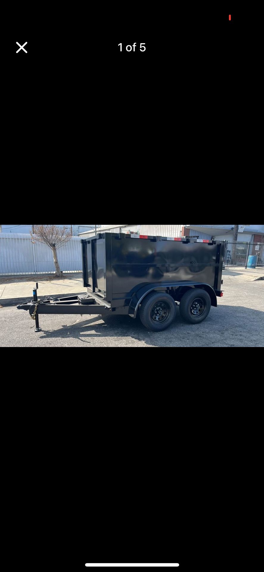 New dump trailer 5x8x3 2-3500 lbs axles 1-rear electric brake axle Brake away 2-rear barn doors In stock $5299 + tax & lic Financed available Dealer licensed manufacturer & bonded 100 miles free delivery am located in Colton ca 2-years warranty Hablo español More options available