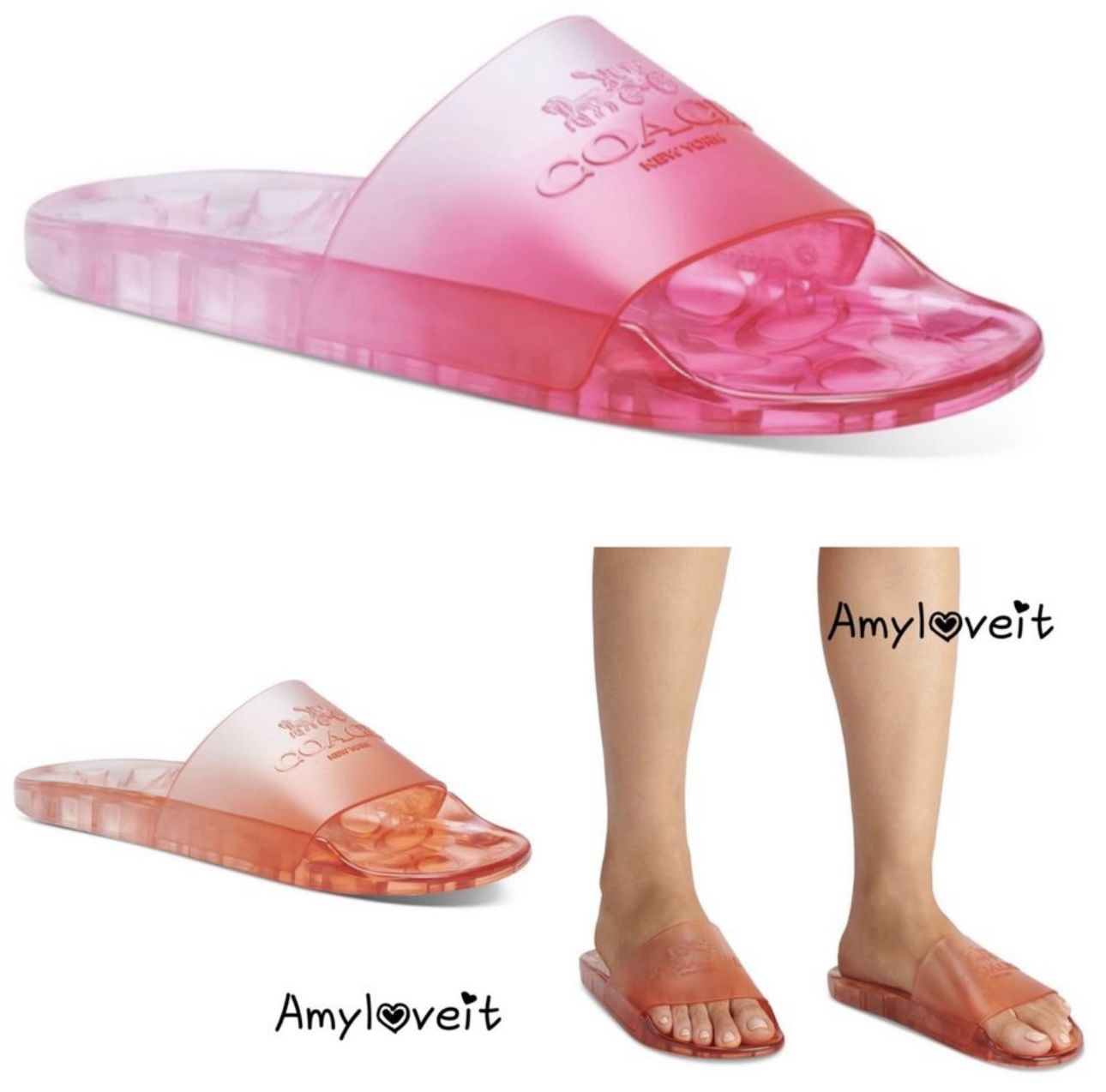 Coach Ulyssa Jelly Pool Slides Price is per pair. New with box Retail: $98 Both Size: 9 Choose your color. Colors: Petuna or Tangerine Throwback jelly style gets a signature update and water- resistant savvy in the cool Ulyssa slides from COACH. • 3/4" heel • Rubber • Manmade sole See less