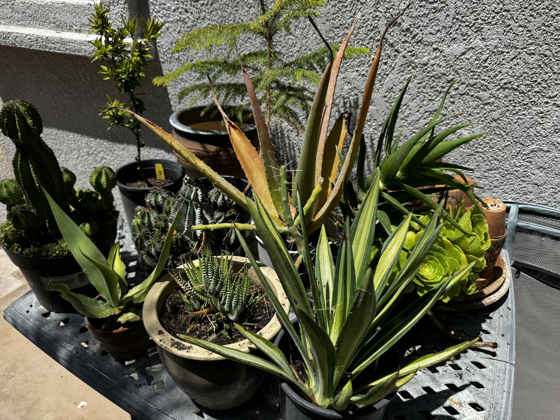 10 Assorted plants and succulents $50 for all listed below: or $5 each Aeonium 'Kiwi" - Lime green rosettes Agave sisalana variegata - Silver Dagger Agave Agave vilmoriniana - Octopus Agave Aloiampelos Ciliaris - Climbing Aloe Aloe Vera - Nice size Euphorbia anoplia - Tanzanian Zipper plant – Both green and a more silver variety Haworthia Fasciata - Zebra Plant ( a small Aloe relative) Myrtus communis 'Boetica' or "Contorta" - Twisted Myrtle - An evergreen shrub or small tree with architectural appeal. Takes heat and cold well, + Lycium ruthenicum - Black goji berry,, more arid climate tolerant than the red goji. Cymbopogon citratus - Lemon grass. A strong growing variety.