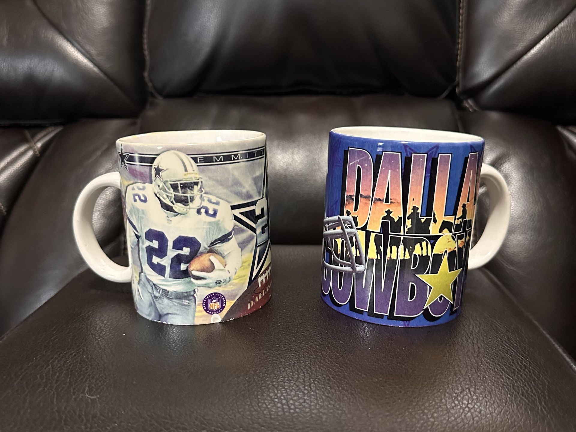 Vintage collectible Dallas Cowboys coffee mugs. From the 90’s Super Bowl run.