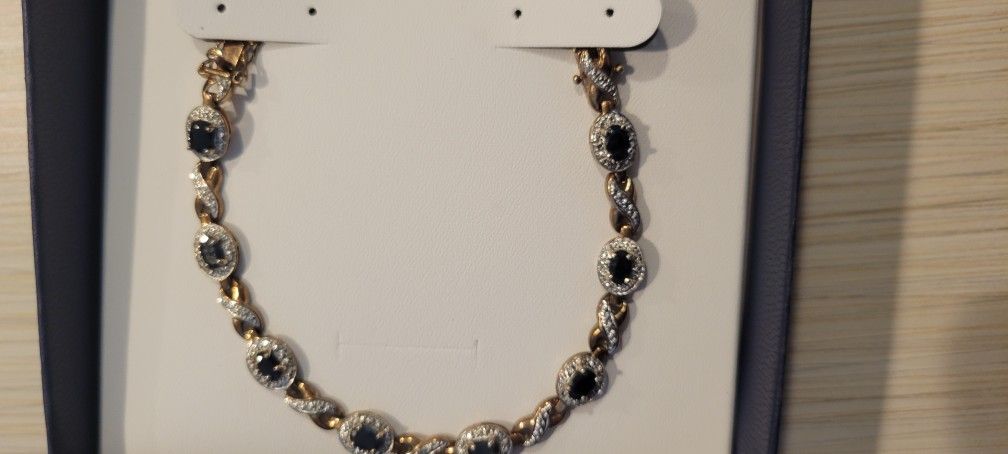 925 silver bracelet covered in 18-karat gold with sapphires and diamonds