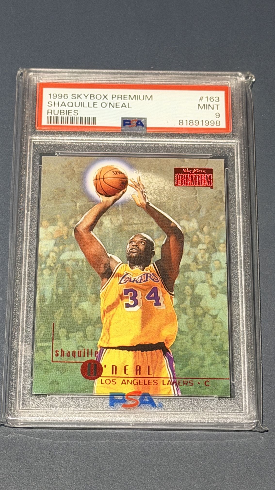 1996 SkyBox Premium Shaquille O’Neal Rubies PSA 9 MINT Extremely tough 90s insert with only 15 graded PSA 9 and none graded higher. • PSA 9 Mint • Population 15 • No PSA 10s exist • Rare 1996 SkyBox Premium Rubies insert • Lakers legend Shaquille O’Neal • Classic 90s basketball card High-end Shaq collectible and one of the tougher 90s parallels to find in high grade. Perfect for Shaq collectors, Lakers fans, or serious 90s basketball investors. Message if interested. ⸻ Search Keywords: Shaq Rubies, Shaquille O’Neal PSA, SkyBox Premium Rubies, Shaq Lakers card, rare 90s basketball card, PSA population low pop card, Shaq collectors card, vintage NBA card