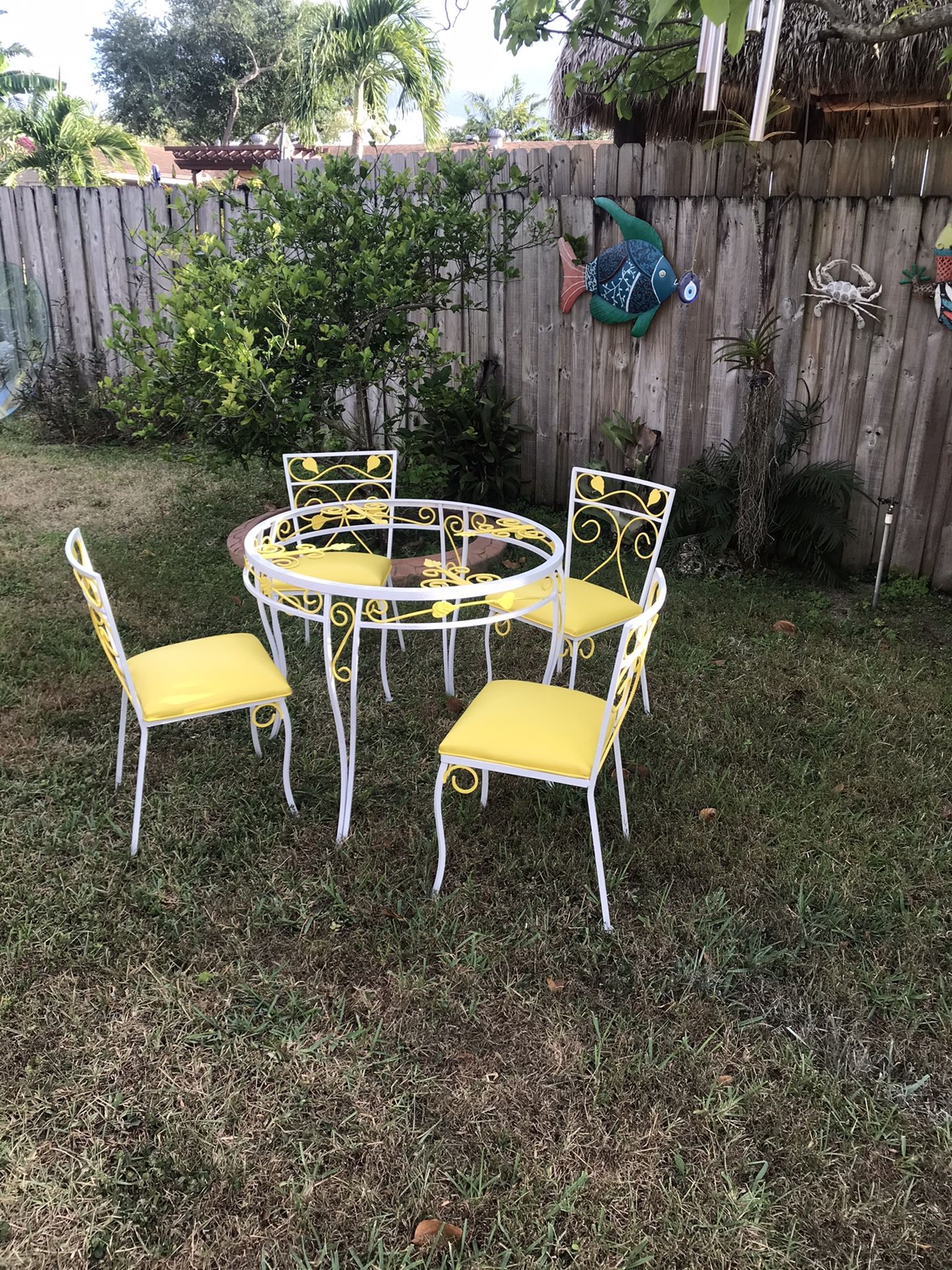 Beautiful vintage like new table 4 chairs and glass top dinning table