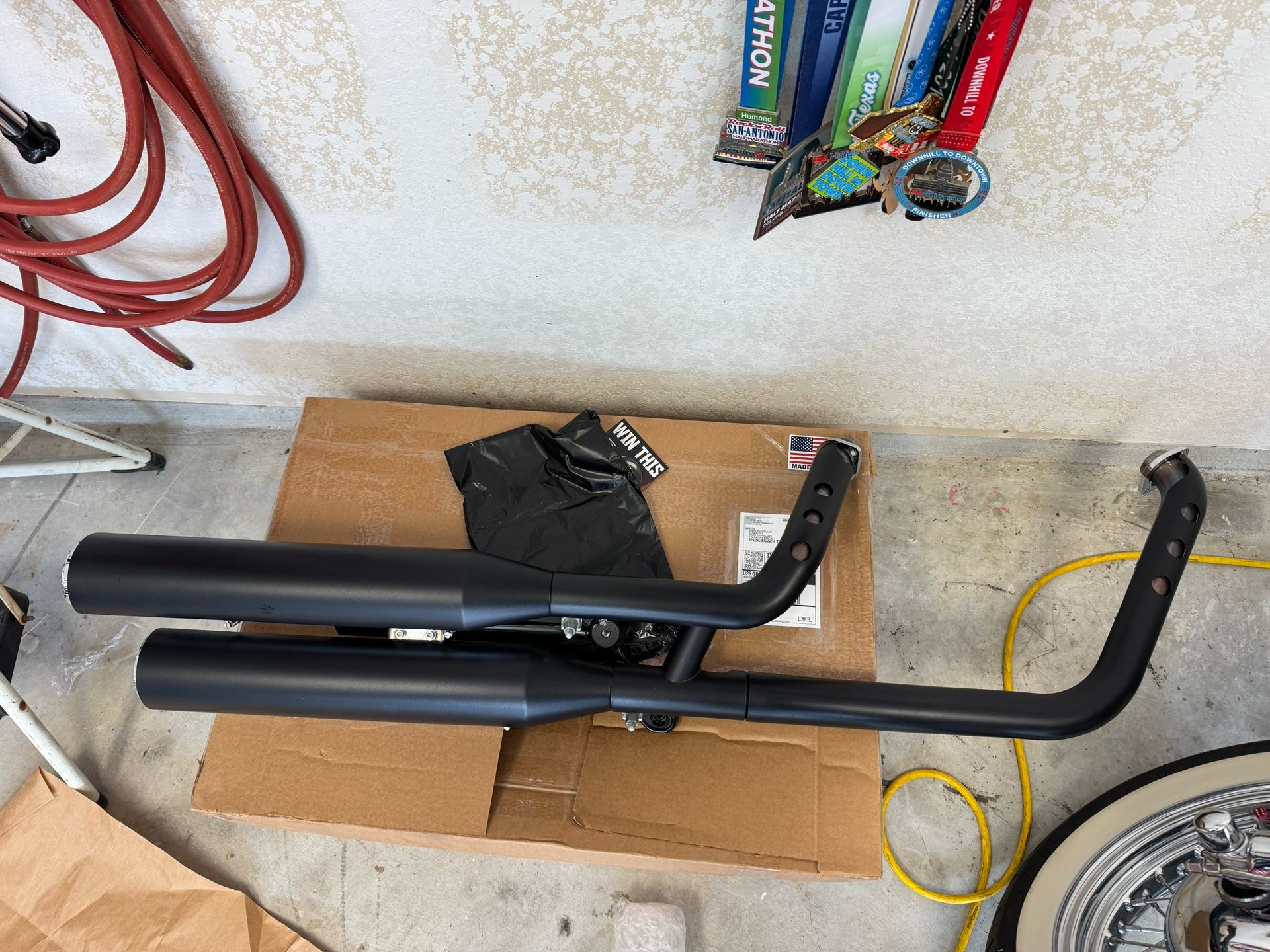 Stock exhaust off of a 2023 Harley Davidson Low Rider S FXLRS