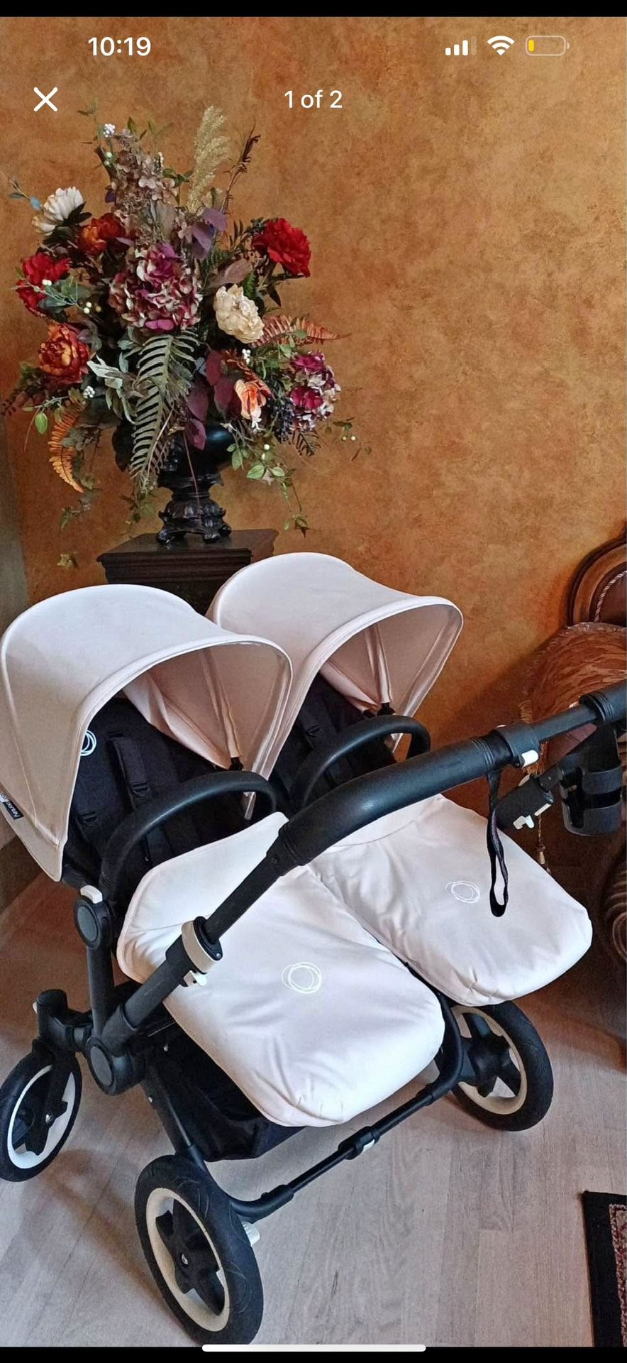 The ultimate double stroller for twins or siblings! We are selling our full Bugaboo Donkey 3 Twin system. This stroller is a lifesaver—it’s narrow enough to fit through standard doorways (30 inches) but incredibly sturdy and smooth to steer, even with one hand. Great condition. No rips or stains. No odors. All functions properly . This set-up is fully loaded and includes everything you need from birth through the toddler years. What’s Included: • Chassis & Wheels: All-terrain, foam-filled tires (no flats!) with a smooth adjustable handlebar. • 2 Bassinets: Complete with mattresses and aprons for the infant stage. • 2 Toddler Seats: Reversible and reclinable (face you, each other, or the world). • Nuna Twin Car Seat Adapter: High-value add-on ($100 retail) that allows you to click two Nuna Pipa car seats directly onto the frame. • 2 Bugaboo Rain Covers: Keeps the kids dry and shielded from wind. • Side Luggage Basket: For when you want to use the stroller as a single (Mono mode). • Under-seat Storage: Huge basket for diaper bags and groceries. $1000 Cash or Zelle Pick up only.