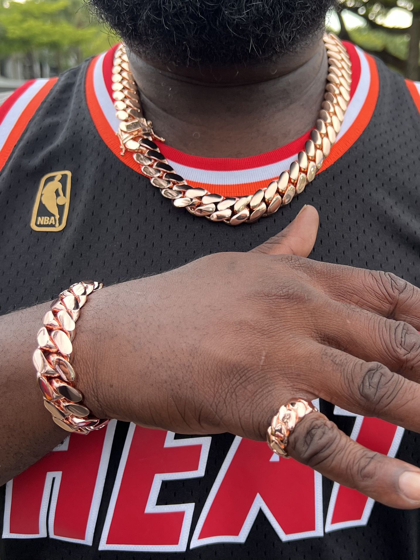 3 Pieces Rose Gold Miami Cuban Links Set Necklace Bracelet And Ring๐ฅ๐ฅ