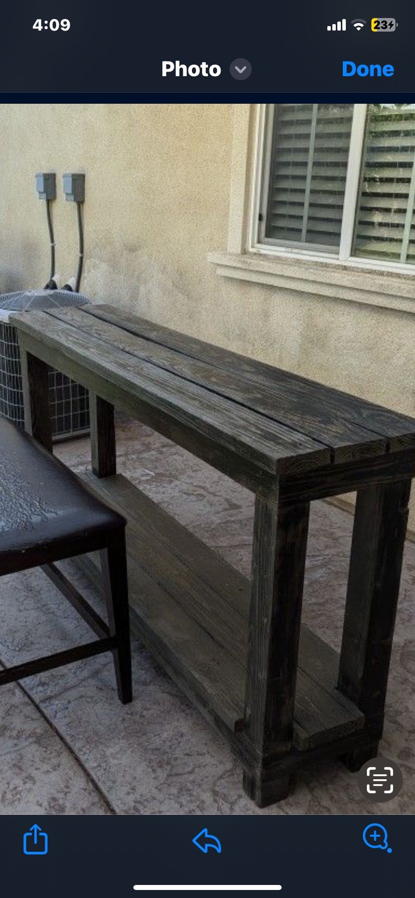6‘ x 38“ x 17“ Heavy duty rustic table Bar/entry table/behind couch/outside Requires two people to move it Pick up in Eastvale