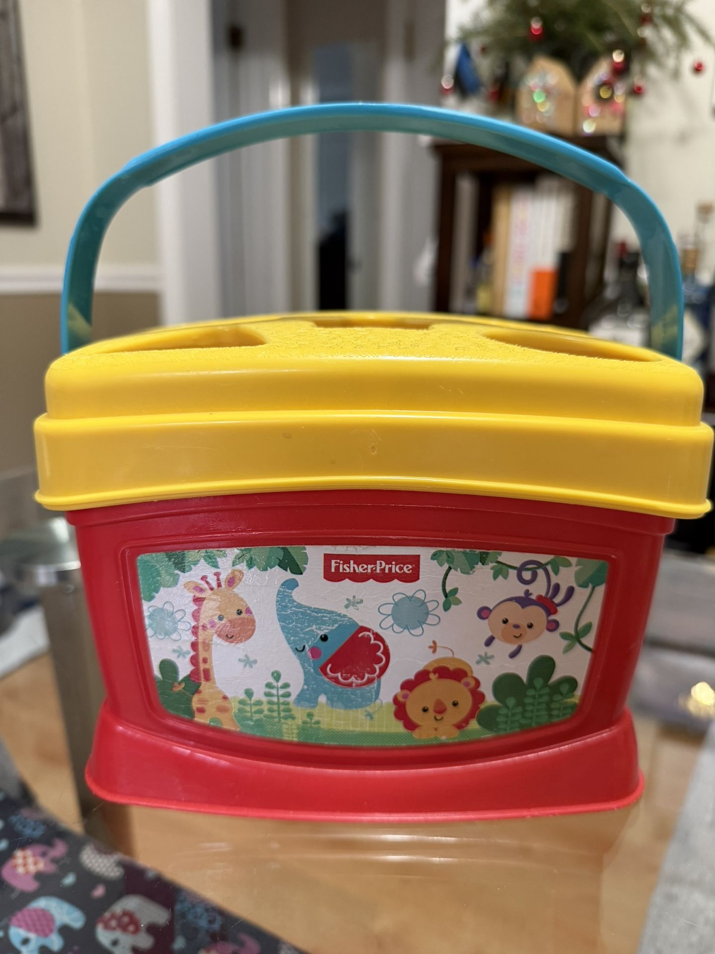 * The label is a bit worn out but otherwise the toy is in a really good shape. * Removable lid - can easily store blocks (and other things π) in the bucket * Comes with 7 blocks * Dimensions: H 5.5β x L 7β x W 5β * Easy-carry handle