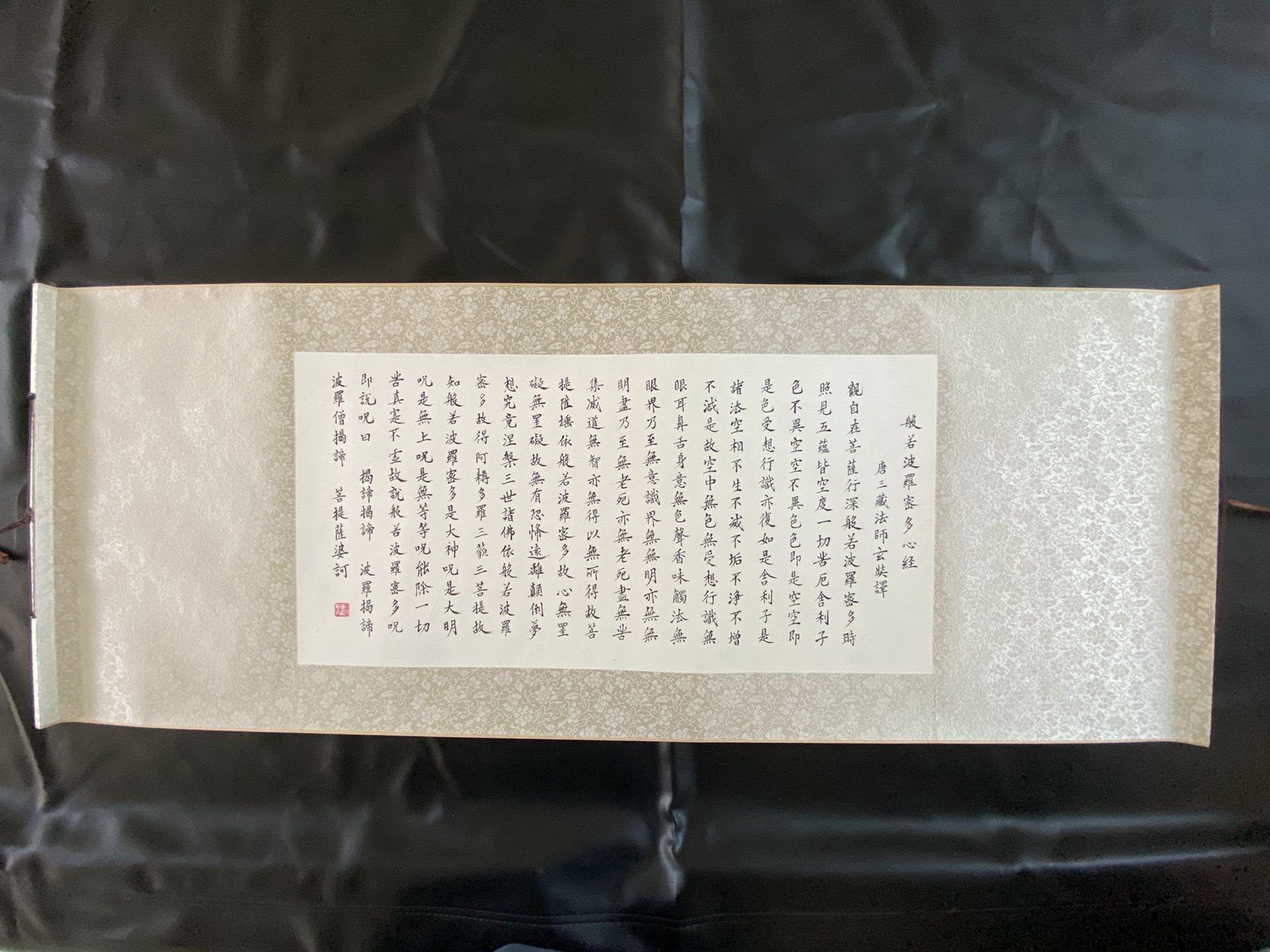 Buddha Heart Sutra scroll wall art, a beautiful handwritten piece 48x19