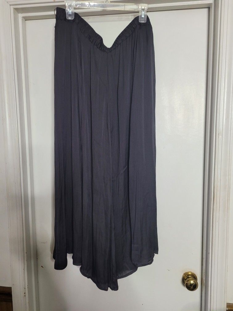 Black maxi crinklely skirt, elastic waist band (belt hoops). Size XL , 100% Polyester
