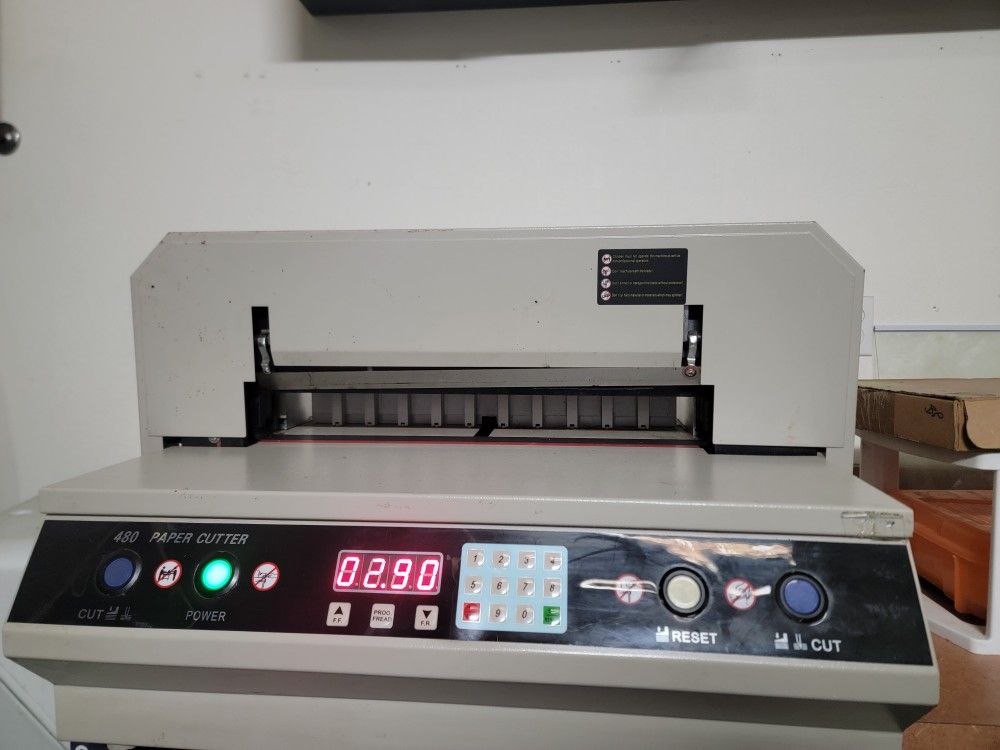 Very clean and rarely used. Needed a cutter for a rush order for our biggest customer and ended up keeping it for cutting down consistent business card orders for several Culver's locations until shortly after started sending everything out. I paid over 4 times what I asking and I have the base, I just haven't put it together. Specs below : Efficient Cutting: Max. Cutting Size:18 inch (450 mm), Min. Cutting Size: 2 inch(50 mm), Cutting thickness:1.6 inch(40 mm), Cutting Precision:±0.02 inch(±0.5 mm). Durable Construction: The electric paper cutter mainly adopts metal structure, sturdy and durable. The blade uses the sharp, thickened steel knife with fast cutting speed and high efficiency. Smart LCD Panel: LCD display brings intelligent control and digital operation. The integrated control panel designs the comfortable keys for easy and convenient operation. Infrared Light Positioning: Enclosed infrared light baffles are designed on both sides of the paper cutter guillotine. The positioning of infrared light makes the paper cutting more intuitive and accurate and provides more secure and reliable operation. Multiple Application: This electric guillotine paper cutter is ideal for cutting paper, coupon, label, cardstock, etc. For both commercial & professional use in the office, laboratory, industry, etc.