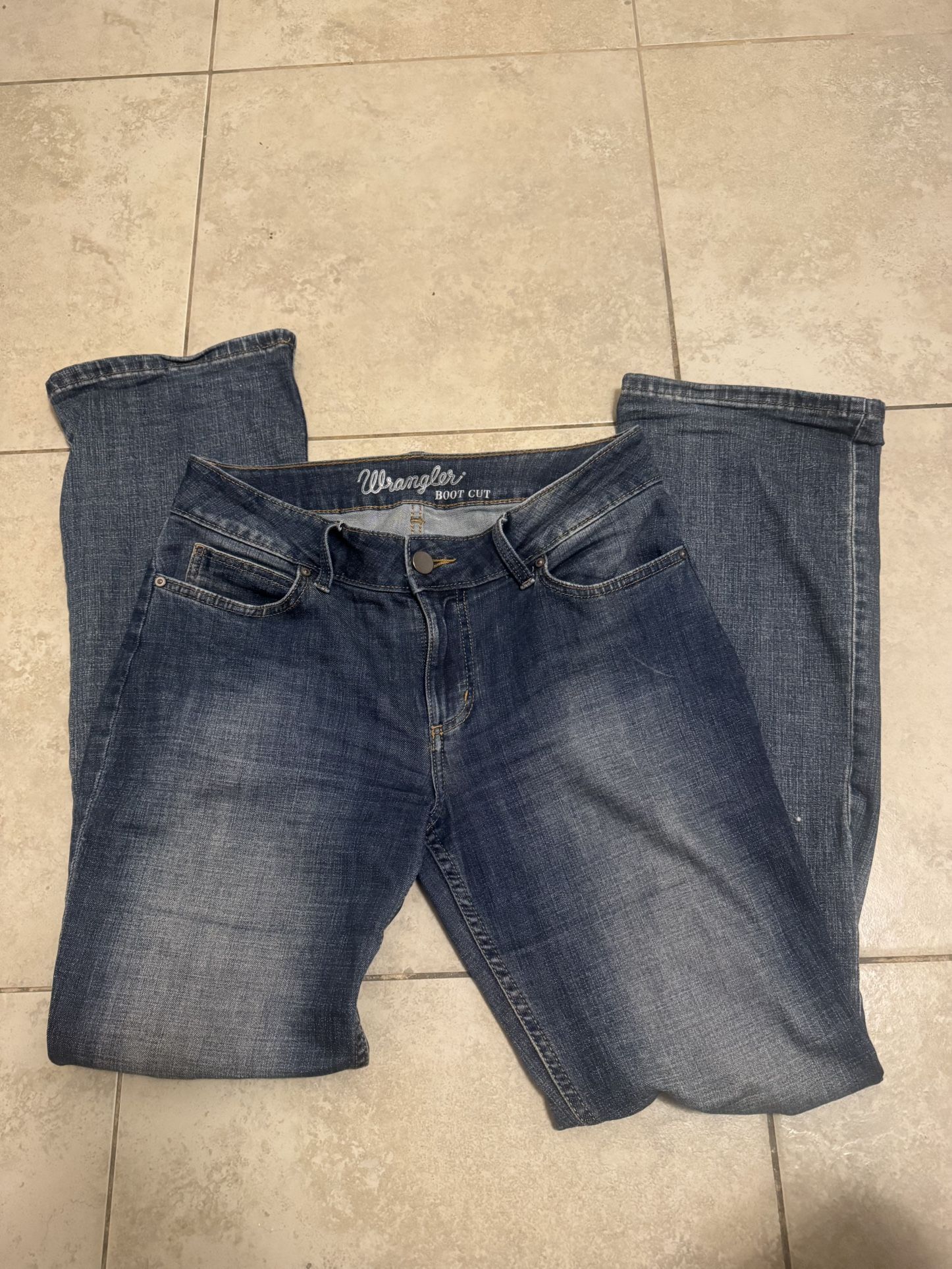 Wrangler retro dark blue denim bootcut midrise jeans women