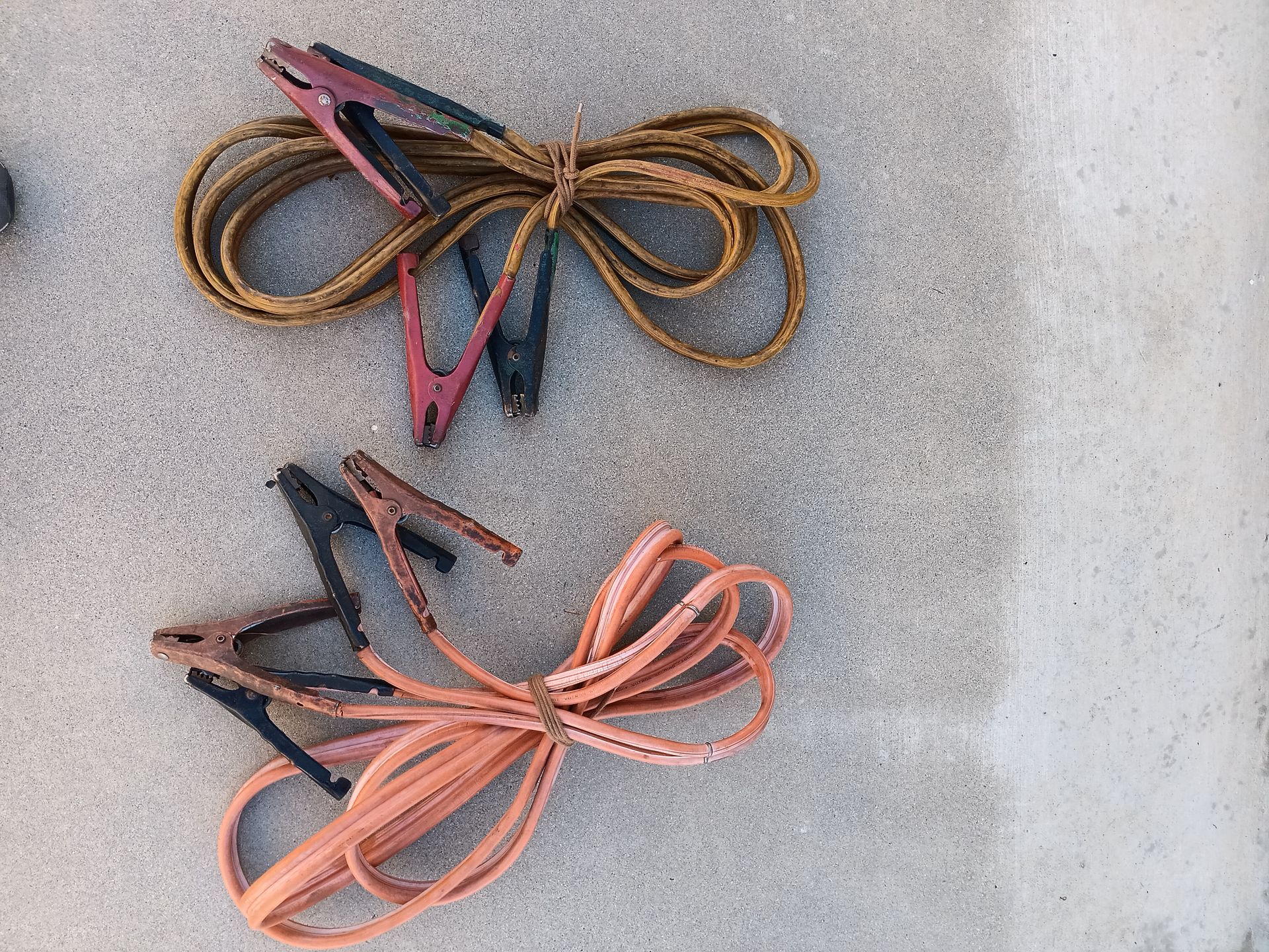 3 Jumper cables. Black cables 1 clamp has come off and needs to be reattached. Orange and Yellow cables are fine. $15 Orange Cable $15 Yellow Cable $10 Black Cable