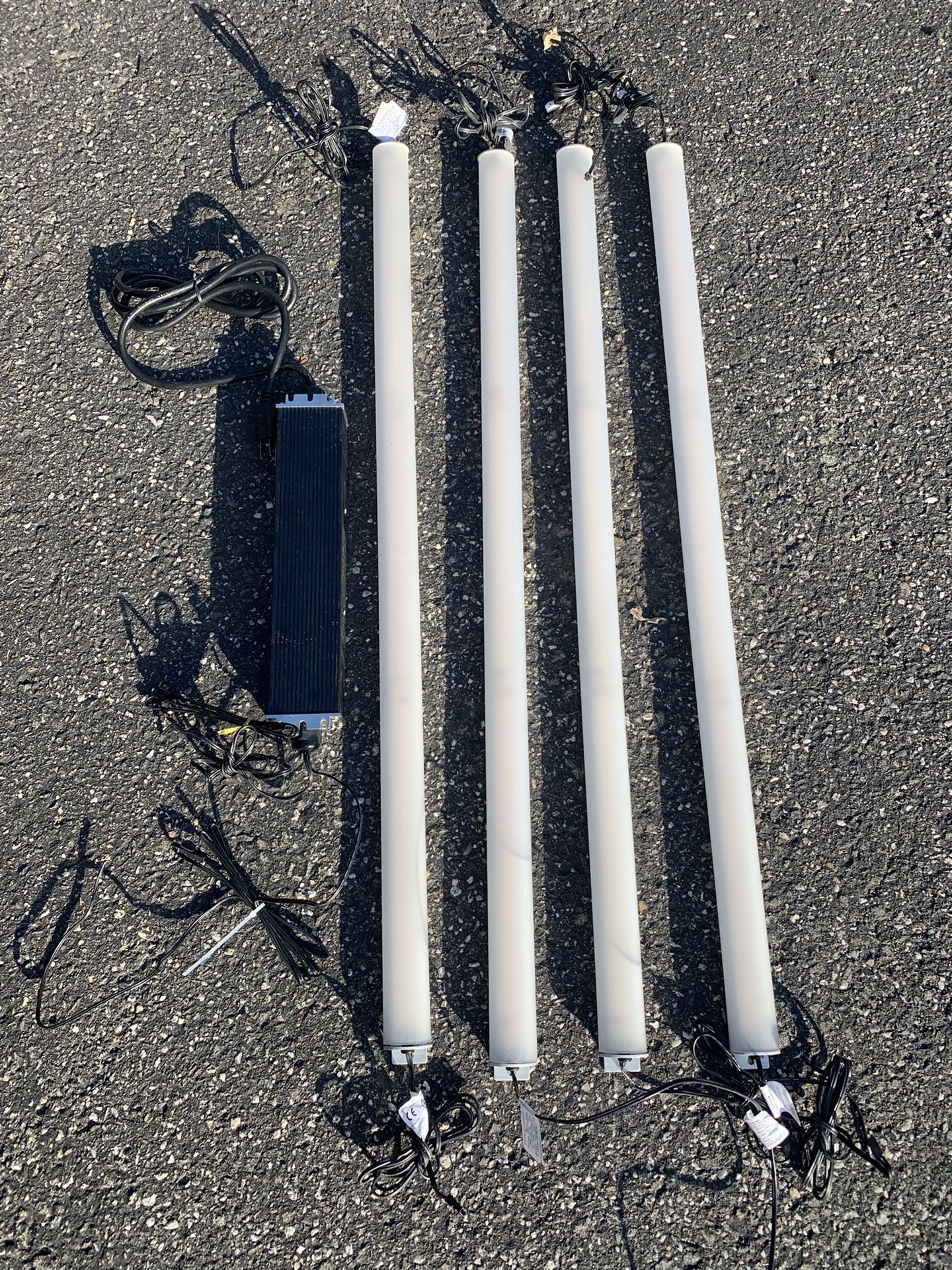 12 Commercial led lights with 4 power supply 34 inches long Good for under cabinets,behind shelves etc… $100 for all