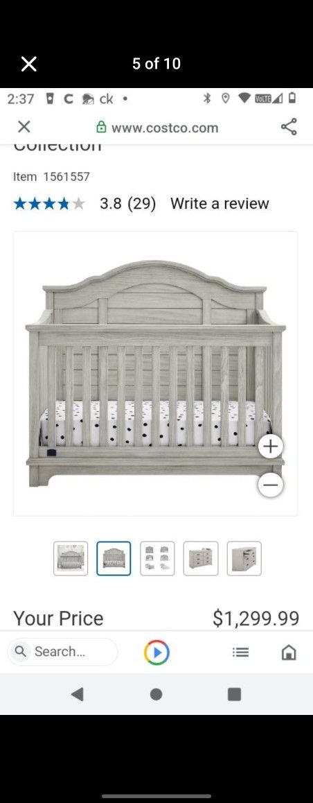 Brand new in box unopened. Gray color and comes with the twin bed rails as well. Matching dresser with changing table also available. Please see my other post.