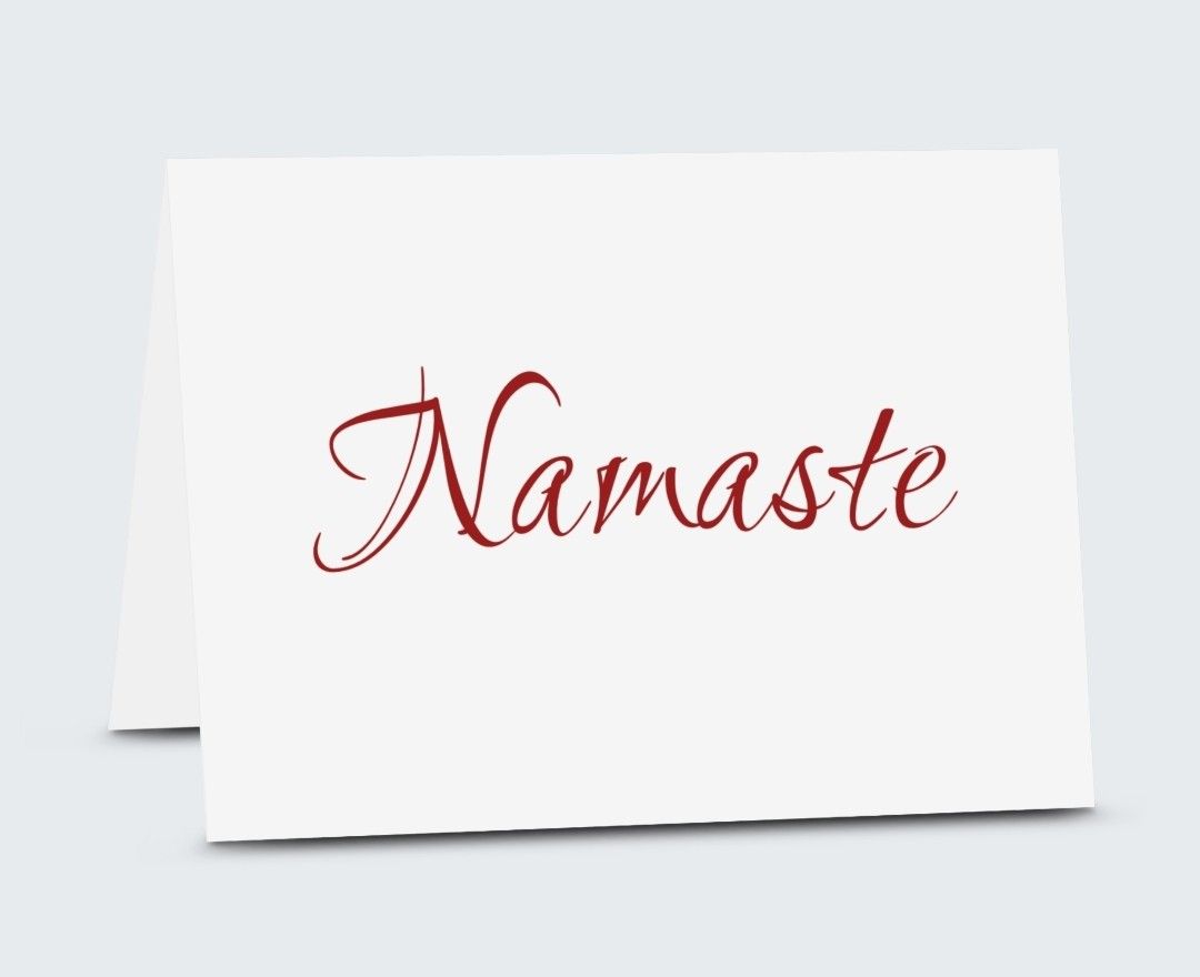 ~Namaste Greeting Card~ ~Printed on sturdy 12 pt. cardstock ~Size is 7" x 5" ~Simple, Elegant, Chic ~Each card comes with a plain, white envelope and sealed in a protective cover ~Good for any occasion and blank inside to write your own personal message ~Send for a Hello, Thank You, Birthday, Christmas, Anniversary, or any Holiday