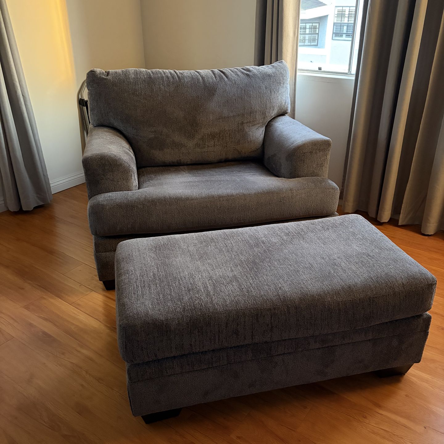 ASHLEY Sofa Chair (Slate Gray) - Has matching ottoman. Measurements: 48”W-33”H (back of chair) -42”D. Comes from a smoke & pet-free home. Price is negotiable. Pick up only.
