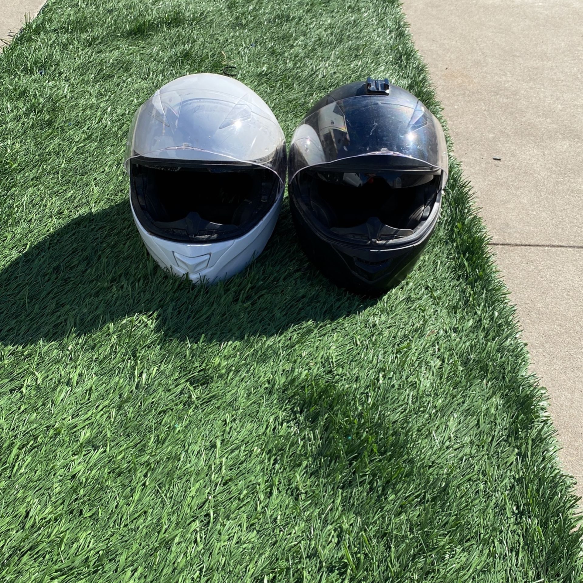2 helmets, white helmet 2XL, black helmet XL, 30 bucks each