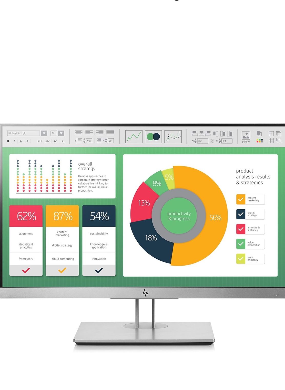 (2 Items ) two HP monitor Style meets substance in a strikingly modern business display crafted for optimal viewing, productivity, and ergonomics. The HP EliteDisplay E223 21.5-inch Monitor has a 3-sided micro-edge bezel for seamless multi-display tiling and 4-way adjustability so you can comfortably power through your day. Expand your productivity with uninterrupted views of one screen or many with a 3-sided micro-edge bezel that supports virtually seamless arrays. Get crisp visuals from any angle on the 1920 x 1080 Full HD resolution, 21.5” diagonal IPS screen.The product is multiple voltage compatible that voltage arrange is100-240V