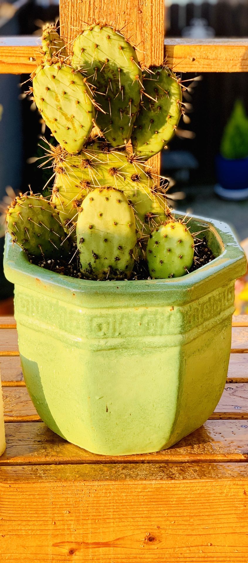 Live outdoor Prickly Pear cactus 🌵 house plant in a textured ceramic planter flower pot—firm price