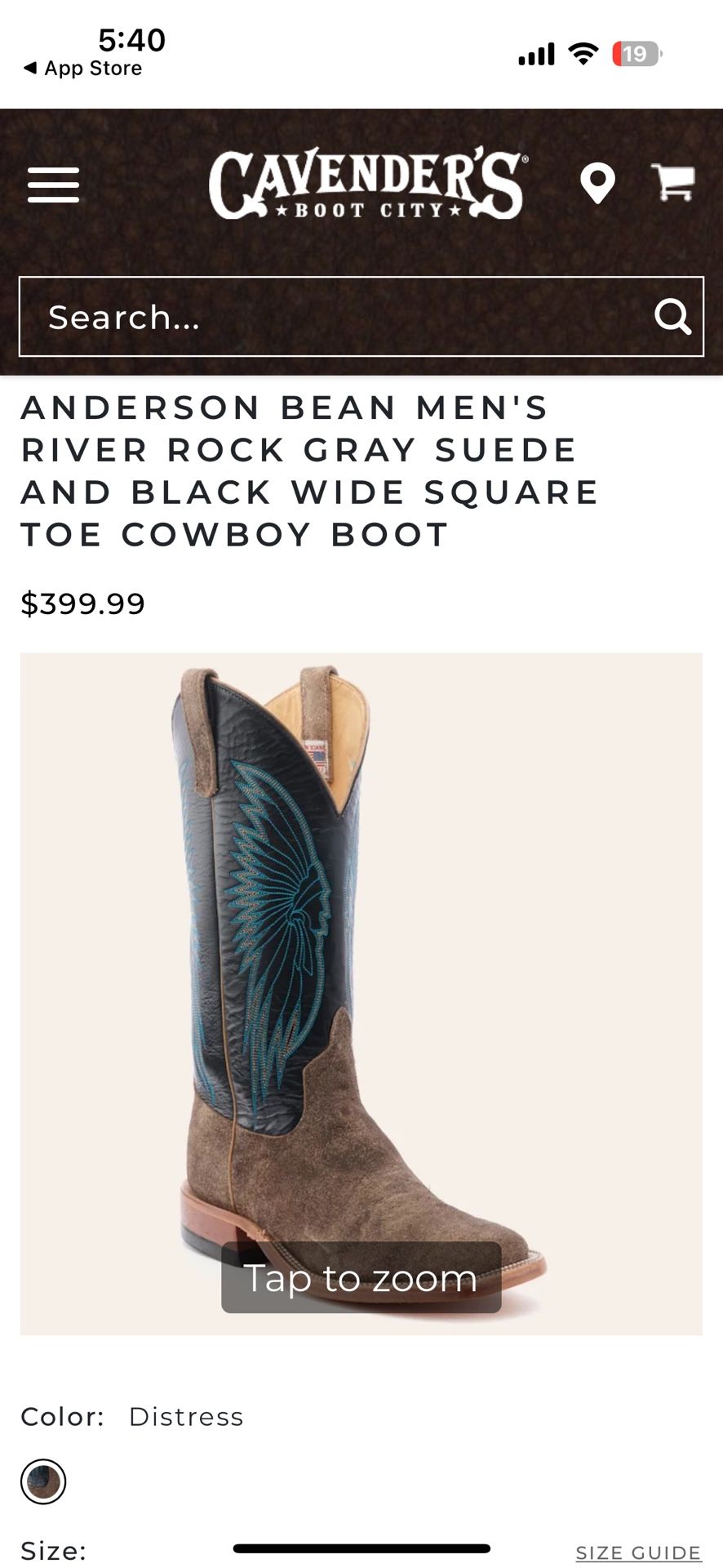ANDERSON BEAN MEN'S RIVER ROCK GRAY SUEDE AND BLACK WIDE SQUARE TOE COWBOY BOOT, Worn 2 times and figured that they were too big for me, I couldn’t return them because the bottom was hard to clean. So they would not take them back. Size 10 EE Willing to take 250$ or best offer I payed 400$