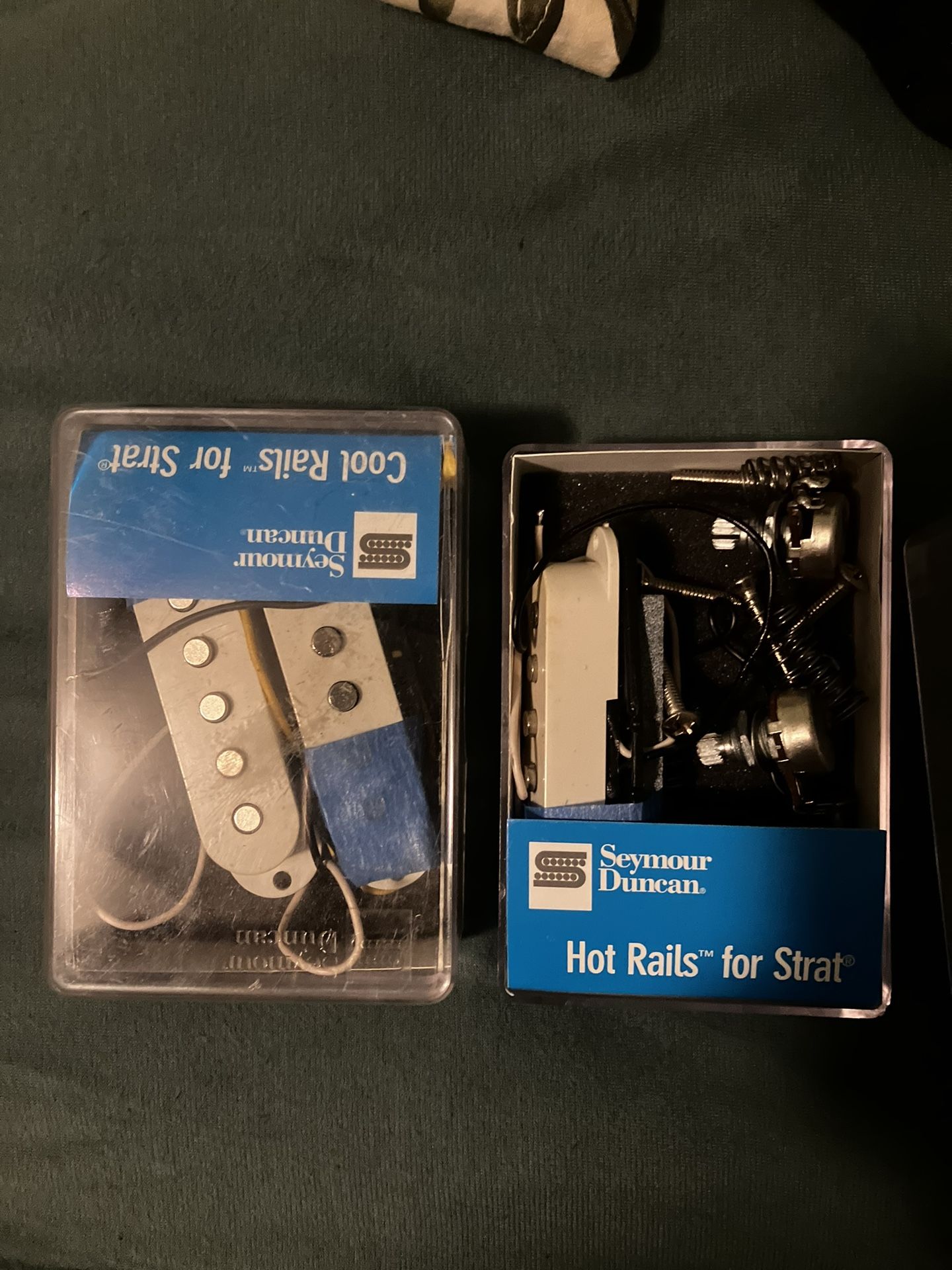 pickups from fender squire strat from around 2004 , have been off the guitar for the majority of that time .