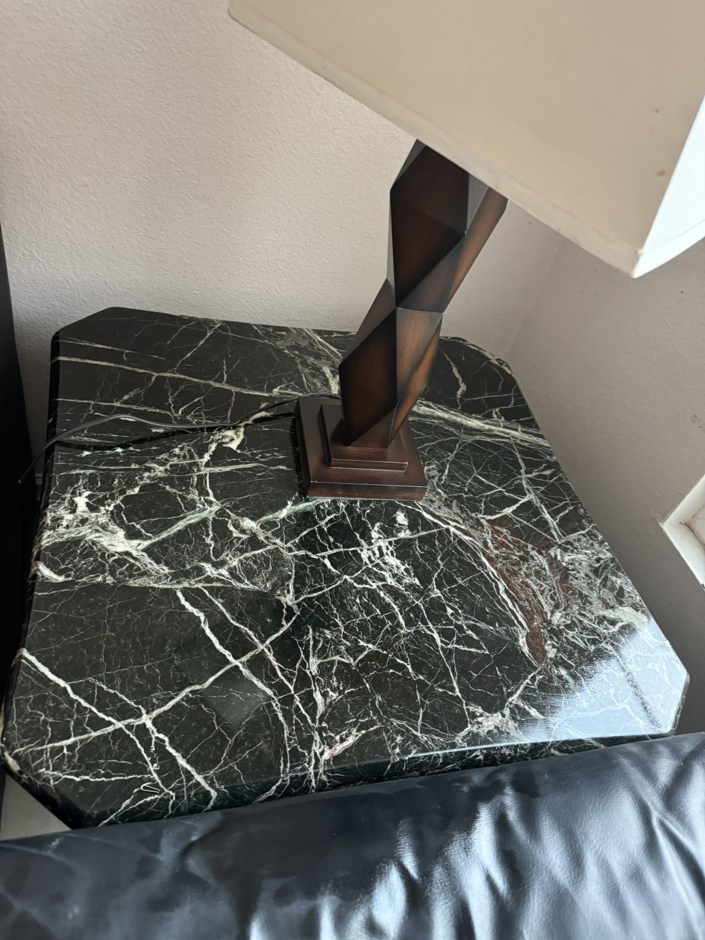 Marble table no chips or cracks in excellent condition is for immediate sale. Very low price. L 27”x W 27”x H 23”
