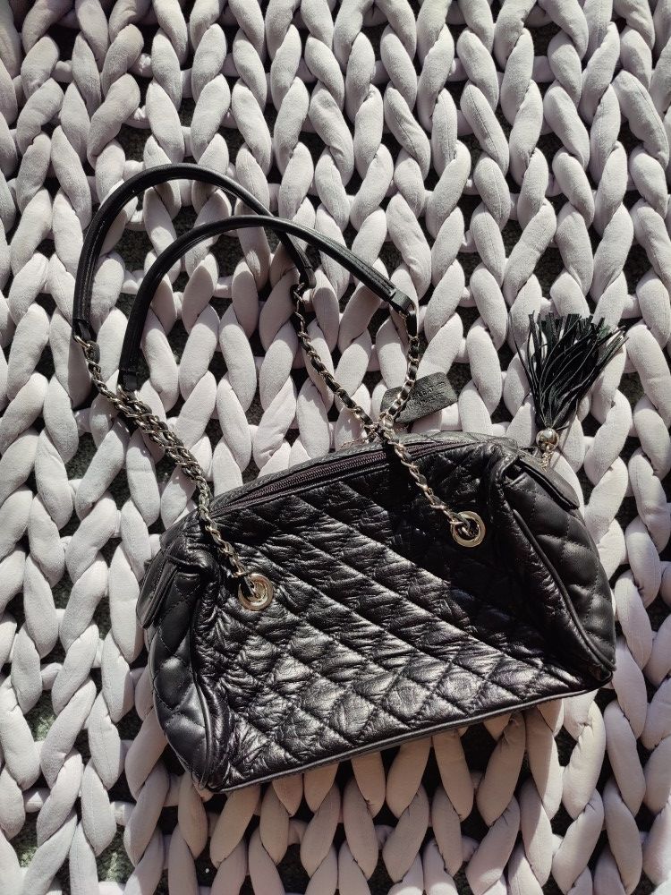 Genuine Leather Tassel Bag With PU Trim