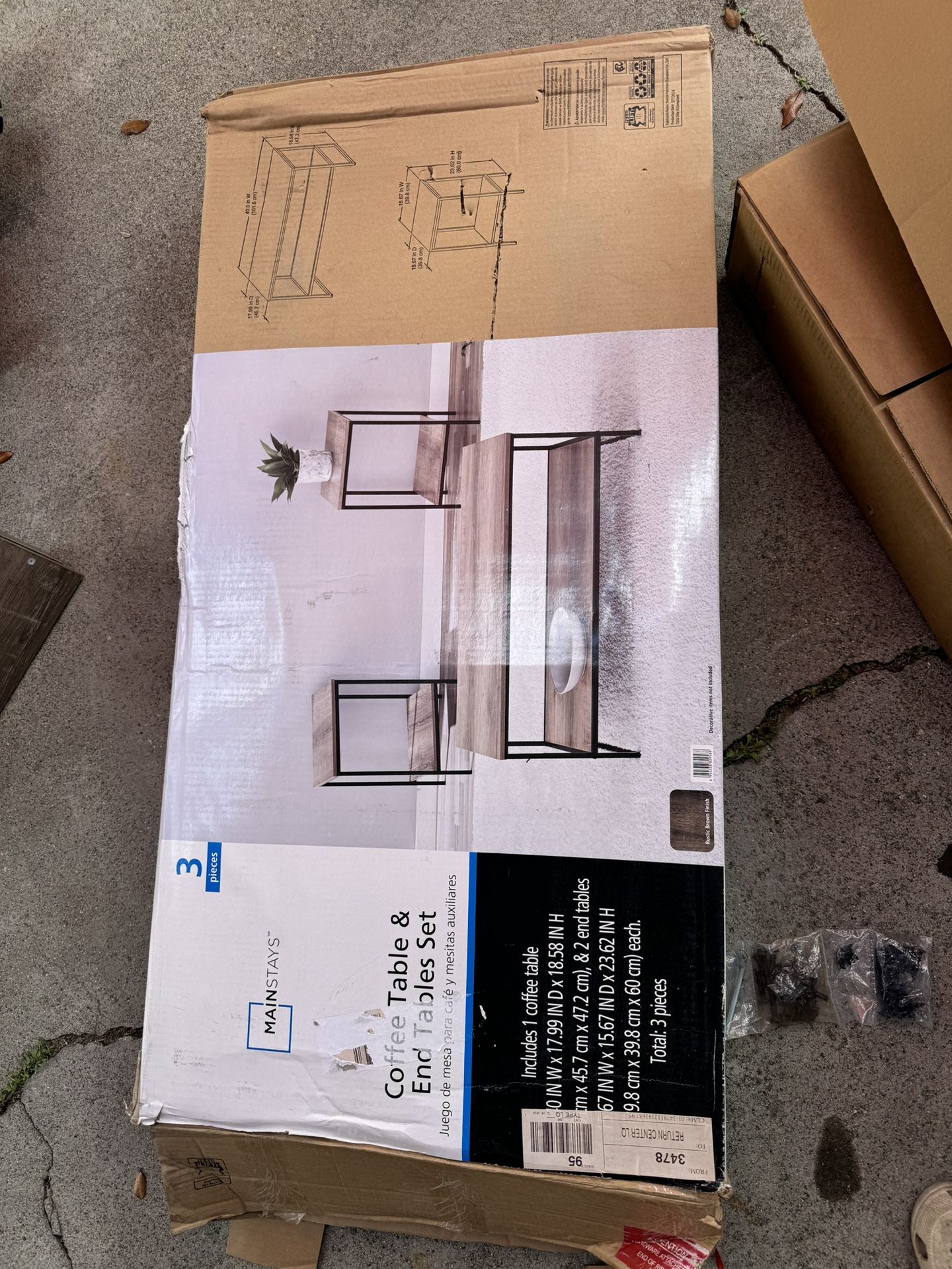 Mainstays Contemporary 3 Piece Rectangular Particle Board Coffee Table, Rustic Brown