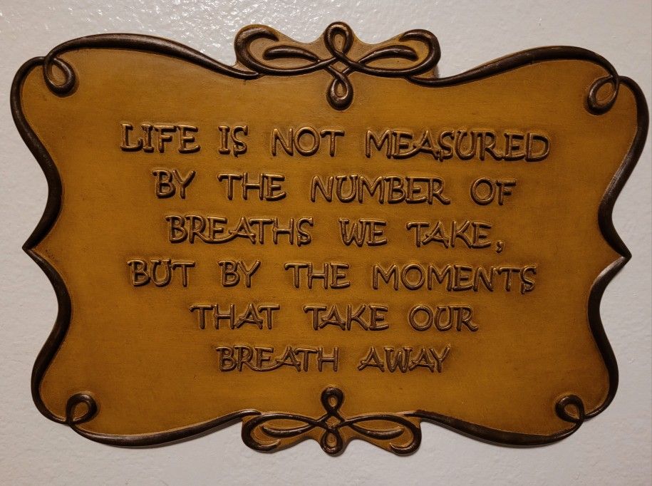 Wall plaque decor, brown with gold resin material, 14 X 10 inches " Life is not measured by the number of breaths we take, but by the moments that take our breath away"