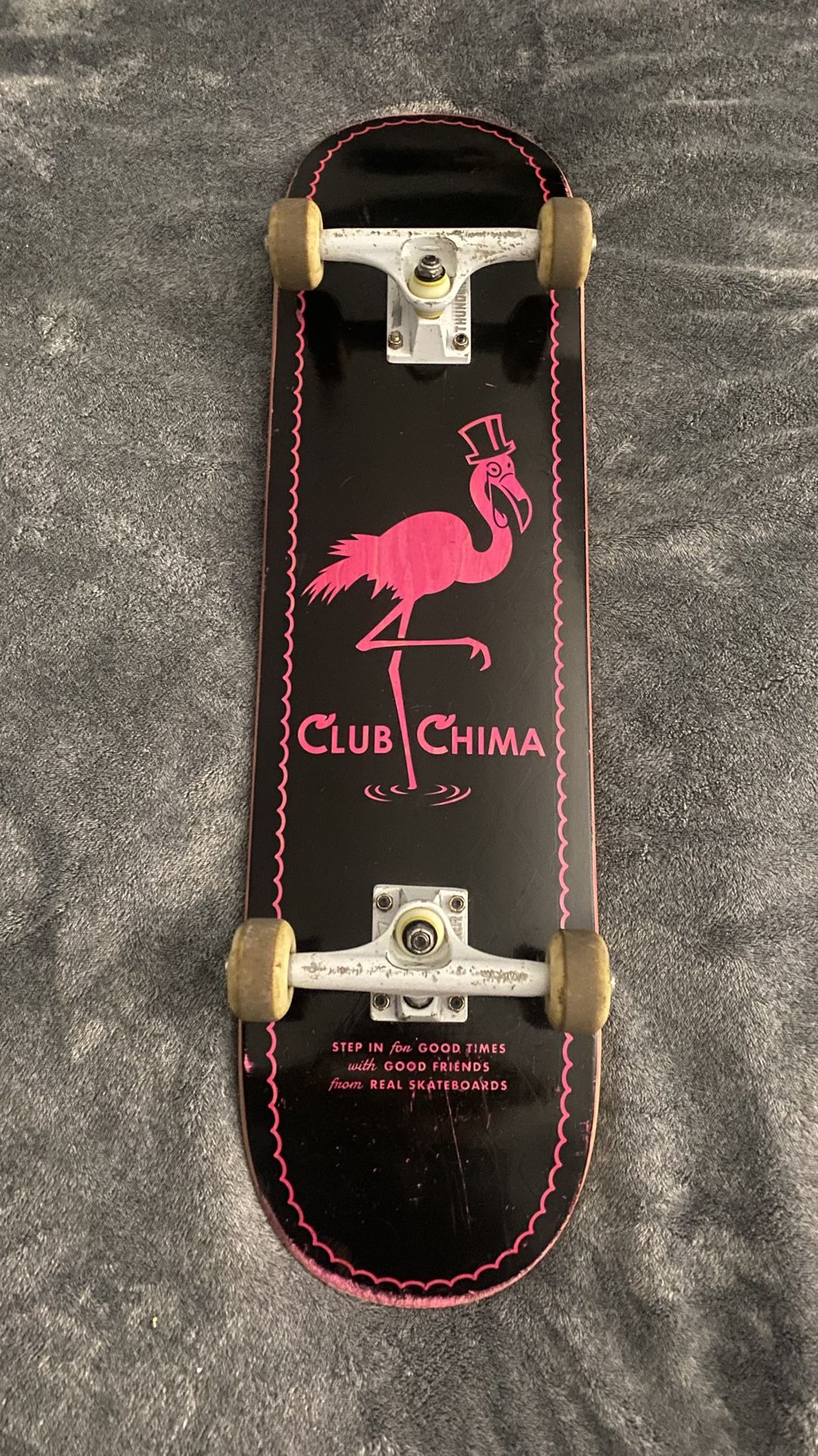 Perfect for beginners, this skateboard boasts an 8.0 deck, Thunder trucks, and 52mm wheels. Note that the grip tape is slightly dirty.