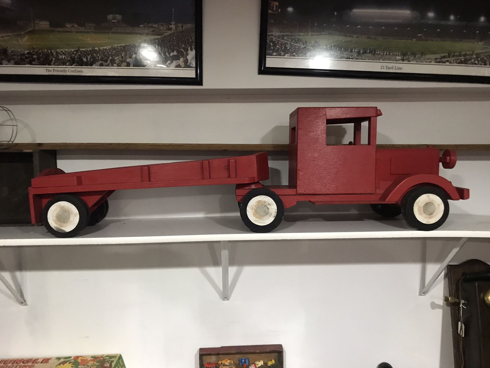Very impressive handmade replica of a 1928 Dodge 3 ton flatbed truck. Very well made and heavy. All wood construction. Very nice solid condition. Not very often does something like this become available. Approx - 53 1/2” long x 10 1/2” wide x 15 1/4” tall $900 Pickup in Algonquin