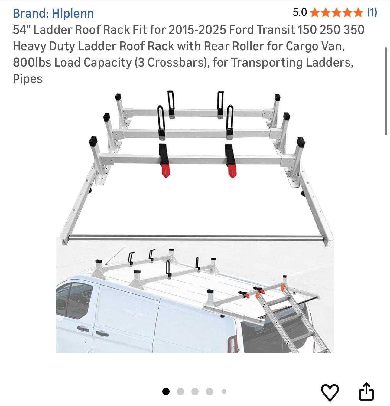 54" Ladder Roof Rack Fit for 2015-2025 Ford Transit 150 250 350 Heavy Duty Ladder Roof Rack with Rear Roller for Cargo Van, 800lbs Load Capacity (3 Crossbars), for Transporting Ladders, Pipes