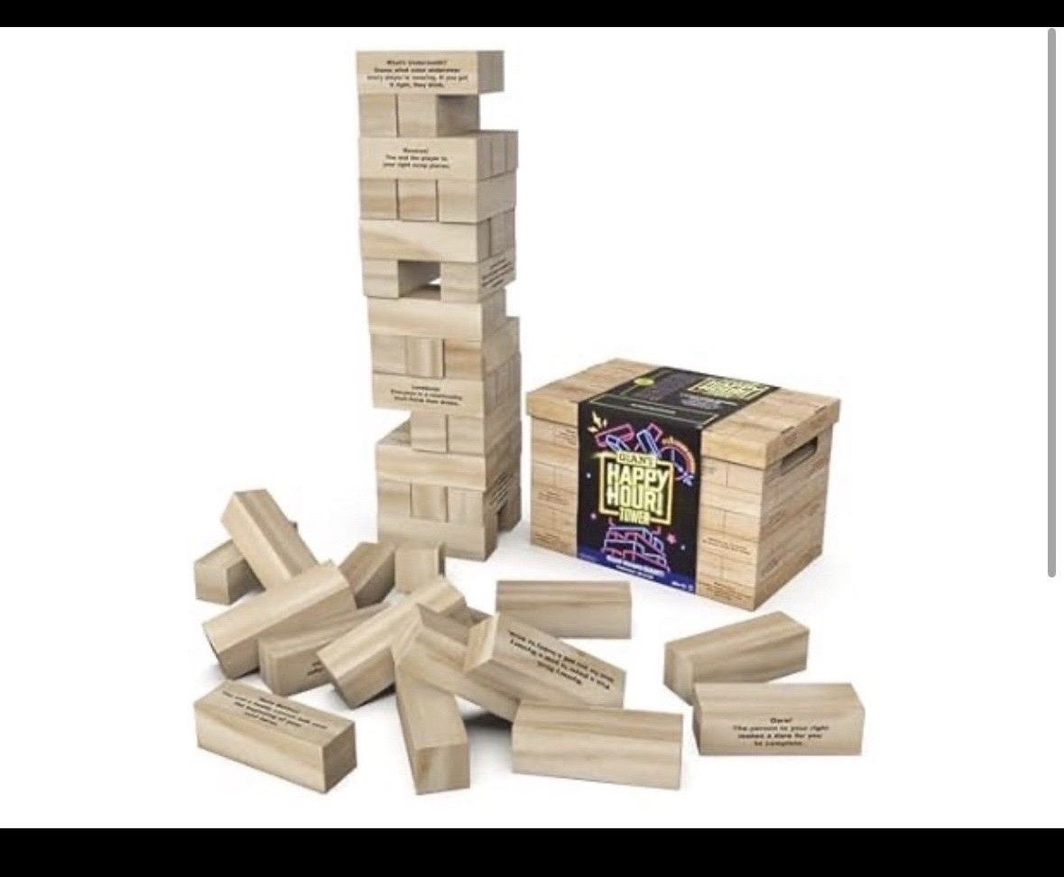 Spin Master Games, Happy Hour Tower Spin Master Games, Happy Hour Tower, Giant Jumbling Wooden Blocks, College Game, Bachelorette Party, House Party, for Ages 18+ New in the box