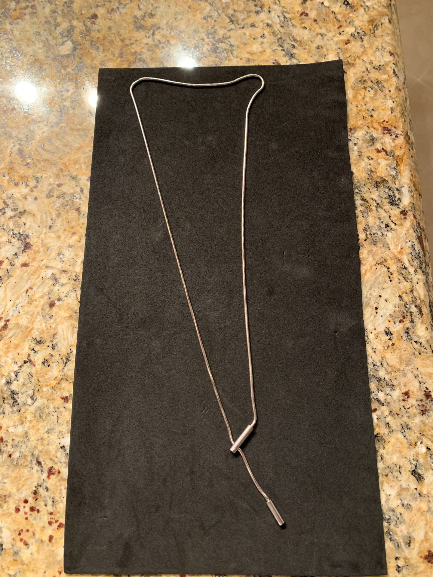 Sterling adjustable necklace-you can make it into a choker and hang between your cleavage to your tummy. Wear it with a bathing suit or open neckline wear