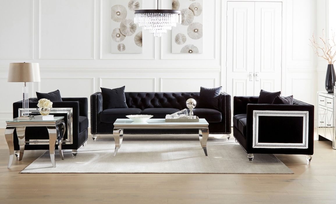 BLACK VELVET W/ Silver Trim Living Room Set