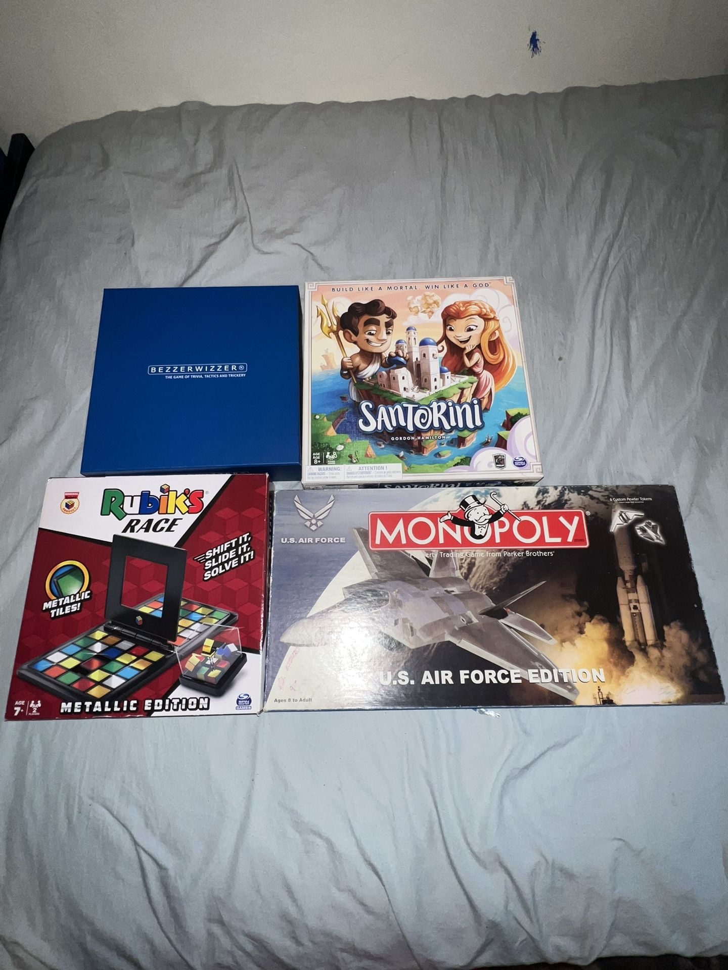 Santorini, Rubiks Race, Bezzerwizzer, Monopoly Air Force Edition (Board Games)