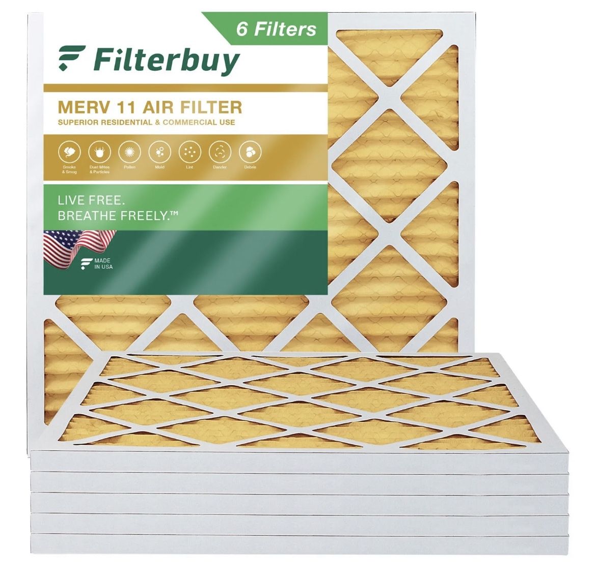6-pack Filterbuy 12x12x1 Pleated Air Filters, Replacement for HVAC AC Furnace (MERV 11)