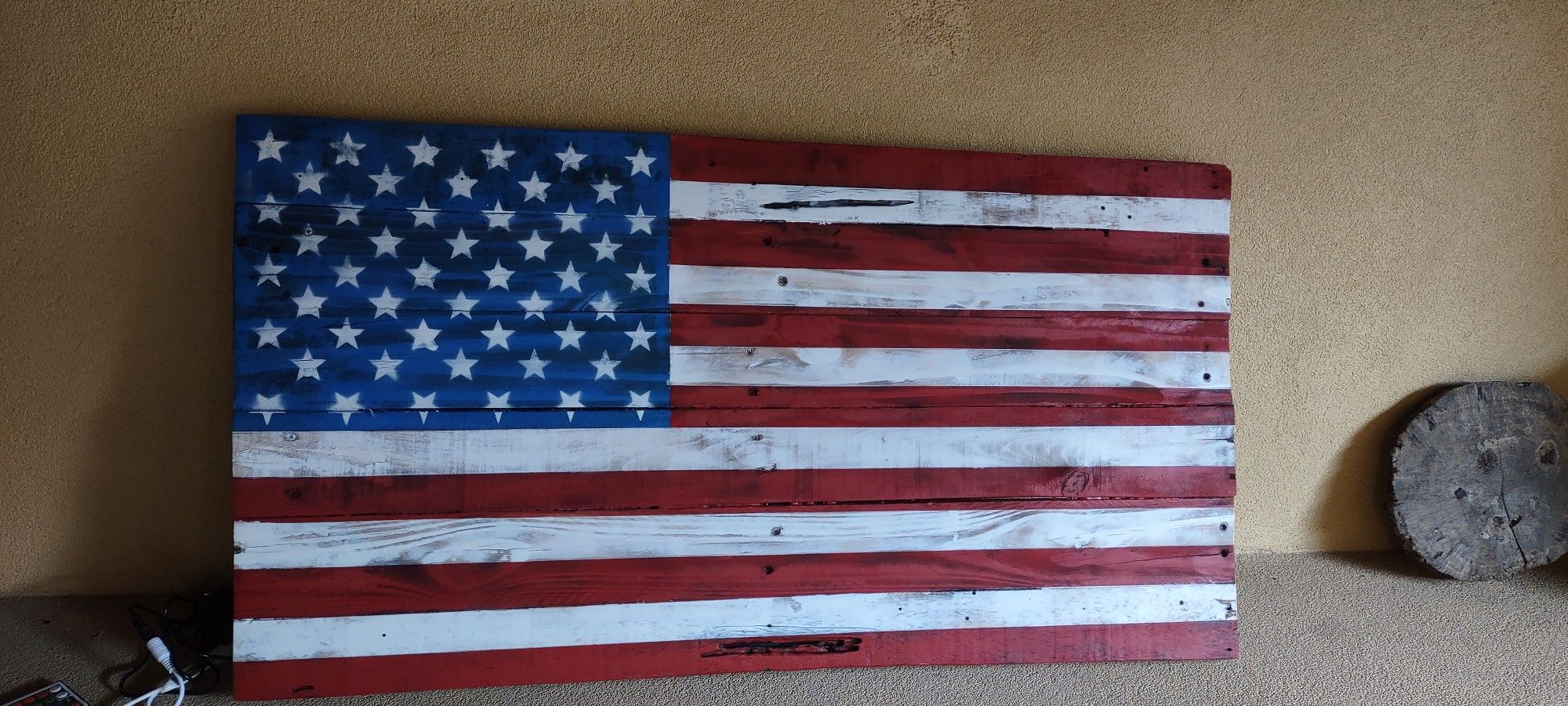 Pallet wood flag ( 2ft x3ft) with LED lights behind it. Great for your man cave, garage, backyard. Make offer.
