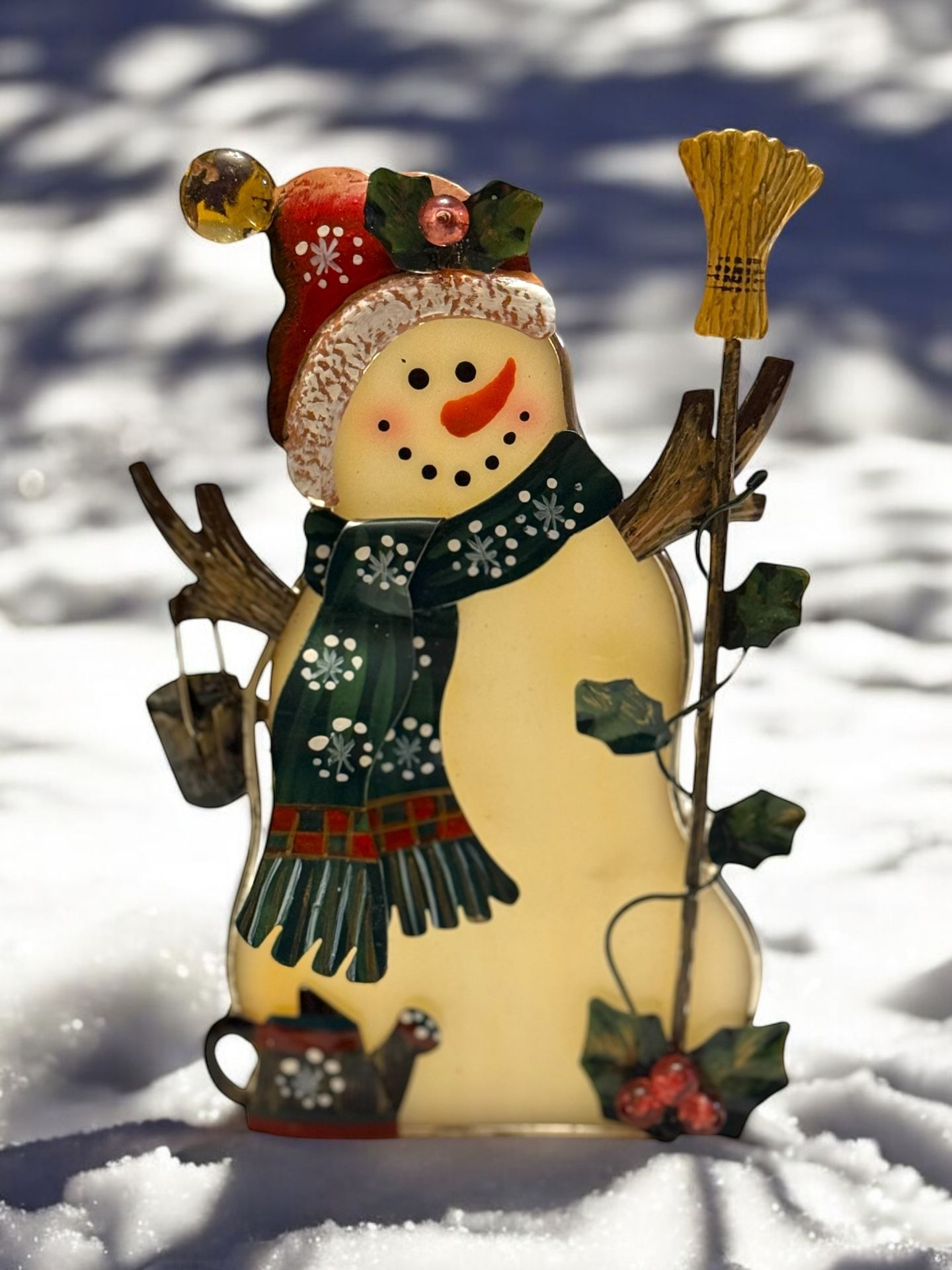 Brighten your home with the whimsical charm of this International Silver Co. candle holder. Crafted from hand-blown glass, this multicolor snowman is a delightful addition to your winter, holiday, or Christmas decor. The glossy finish and hand-painted details, complemented by silver-plated accents, make it a standout piece in any living or dining room. Perfect for holding a tea light, it casts a warm, festive glow that enhances the holiday spirit. This pre-owned piece is in excellent condition, ready to bring joy to your celebrations. Keywords: candle holder, snowman, holiday decor, Christmas, winter theme, hand-blown glass, multicolor, tea light holder, festive style, living room decor, dining room decor, silver-plated, hand-painted, glossy finish, International Silver Co. Brand: International Silver Co. Type: Candle Holder Material: Glass Color: Multicolor Subject: Snowman Theme: Winter, Holiday, Christmas Production technique: Hand Blown Glass Suitable for: Tea Light Country/regio