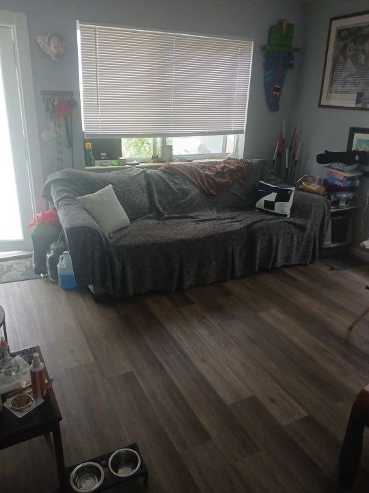Used sleeper couch , with upgraded foam mattress $175 extra at purchase,needs a professional cleaning , we just got a grey couch cover.