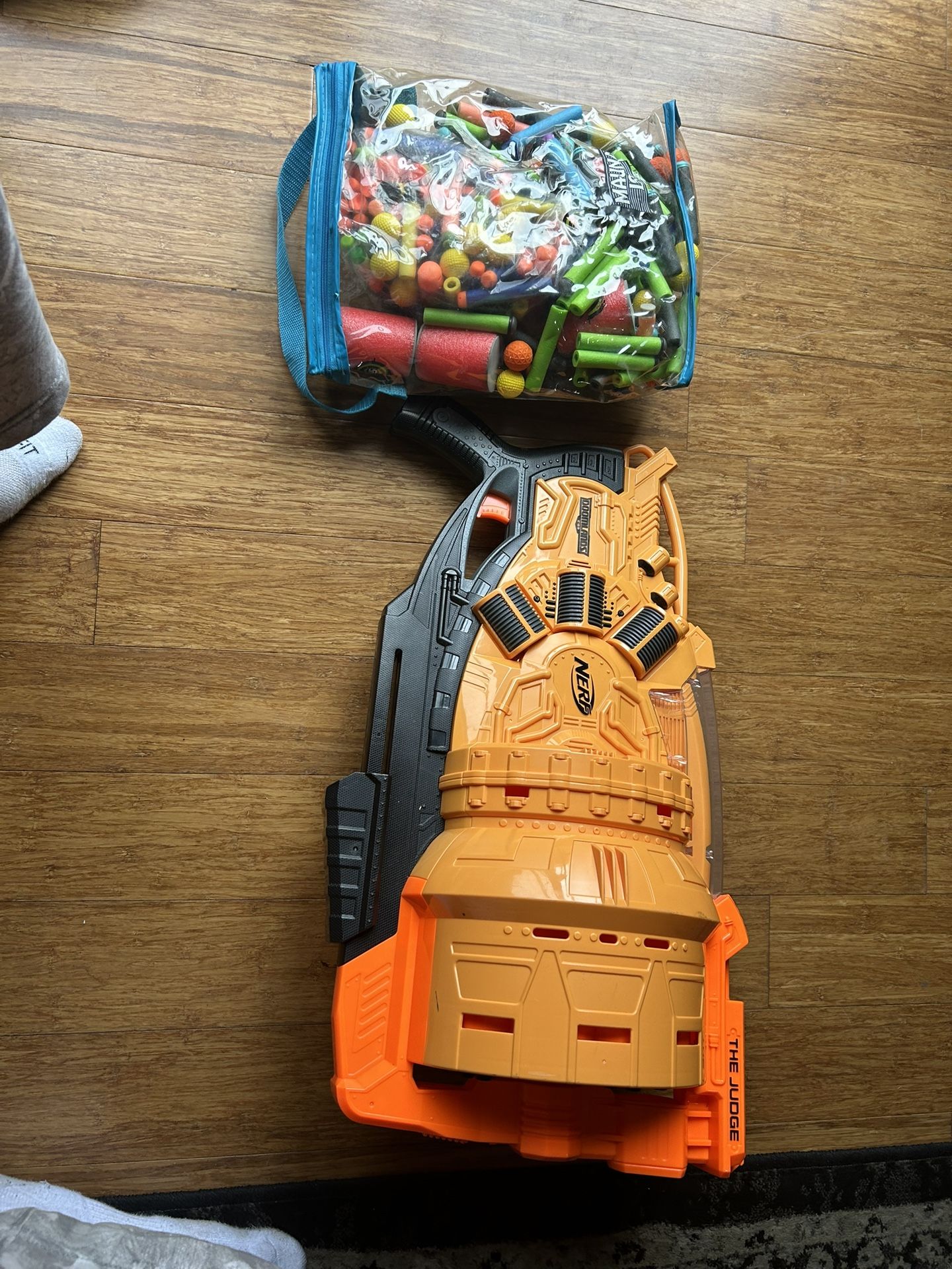 Judge nerf gun with a bunch of random nerf bullets for all types of nerf guns
