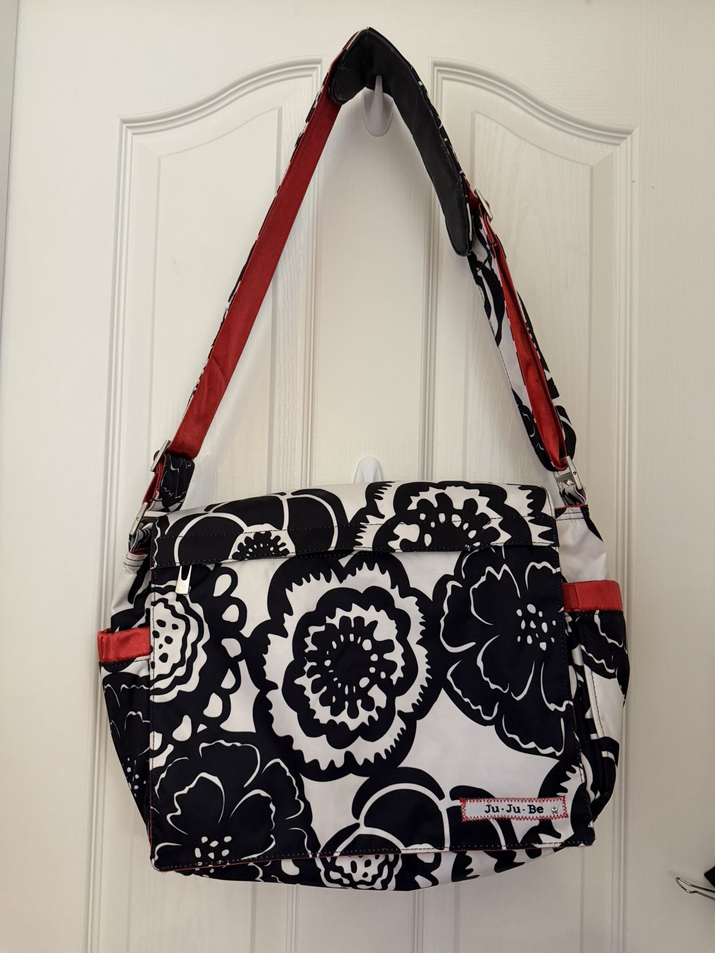Selling a JuJuBe Onyx Blossom Diaper Bag. This is a messenger style bag and it is in great condition! Tons of pockets and storage! Comes with a matching changing pad. Asking $50. Approximate dimensions are: 16” length, 5” width 12” height. Located in N. Scottsdale. Crossroads are Pinnacle Peak and Hayden. Willing to meet.
