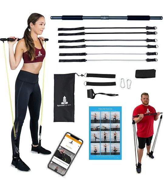 Spirited Namaste-Pilates Bar Home Gym Workout Equipment Kit with Resistance Bands
