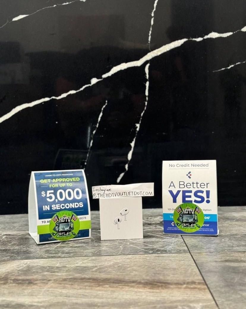 Available 1-8pm Come on down today 1900 Baird farm rd Arlington Tx With warranty Delivery available too FREE shipping on items excluding TVs Take it home today with only $50 No credit needed Ask me how You Can pay all one sum too cash credit debit which is three times amount posted The advertised price is a month for three months financing but you Can also divide full amount by 12 weekly , 6 bi weekly or 3 monthly payments which is listed Finance anything with $50 today take it home have 101 days to pay it off !! Soundbars Home theatres Extended warranty Hover board balance board Amazon Fire stick Sound plate Sound stand Wall mount Tablet Bluetooth portable speaker PlayStation 5 ps5 Apple Beats by dr dre Xbox one s console system Appliances GE Whirlpool Samsung Lg Furniture Tv stand Furniture of America Stove Washer Dryer Designer clothing Shoes Hand Bags Designer watches Ring cameras Vr2 headset Meta quest Apple MacBooks Beats headset Apple MacBook Pro 13” 16” i9 i7 i5 iPad Pro 7th gen 4th gen 32gb 128gb 256gb 1tb Iwatch series 44mm 40mm lte MacBook Air iMac AirPods AirPods Pro Apple Pencil Apple iPad portfolio We carry Led qled oled uled xled qned neo qled mini led ultra Uhd 4K 2160p 1080p smart wifi 120hz nano crystal technology 240hz 60hz 120cmr 240cmr 1200cmr 960 cmr 480 cmr 3D Oled roku smart Tv suhd PlayStation 5 ps5 console k series p series qled Q60T q70t q800t q80t 8k Xbox Nintendo switch Tv brands Samsung Vizio Lg Hisense Sony Hitachi Element Sharp Tcl Ect... Sizes 19” 24” 28” 32” 40” 43” 49” 50” 55” 58” 60” 60” 70” 75” 77” 80” 82” 85” 86” inch tv television El Precio publicado es para nuestro floor model display que tiene un panel delagado y rayones sin garantía como es Precio publicado por 3 es para una de caja abierto condiciones con garantía para las teles pero otros electrónicos sería por una nueva condiciones con un año de garantía The one price listed is for our floor model display which will have thin panel lines and scratches sold as is The price listed on OfferUp times 3 of the amount you see will be for an open box item with warranty for TVs for other electronics advertise appliances cell phones tablets laptop pc cameras it’ll be new sealed with 1 year warranty Prices subject to change without notice Prices based off market price + $100 Excluding tvs