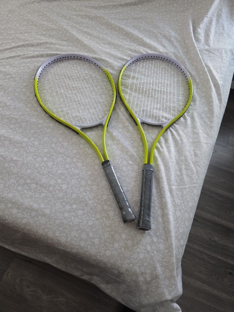 2 tennis rackets for adults Never used Still has wrapper on the handles Price is for both.