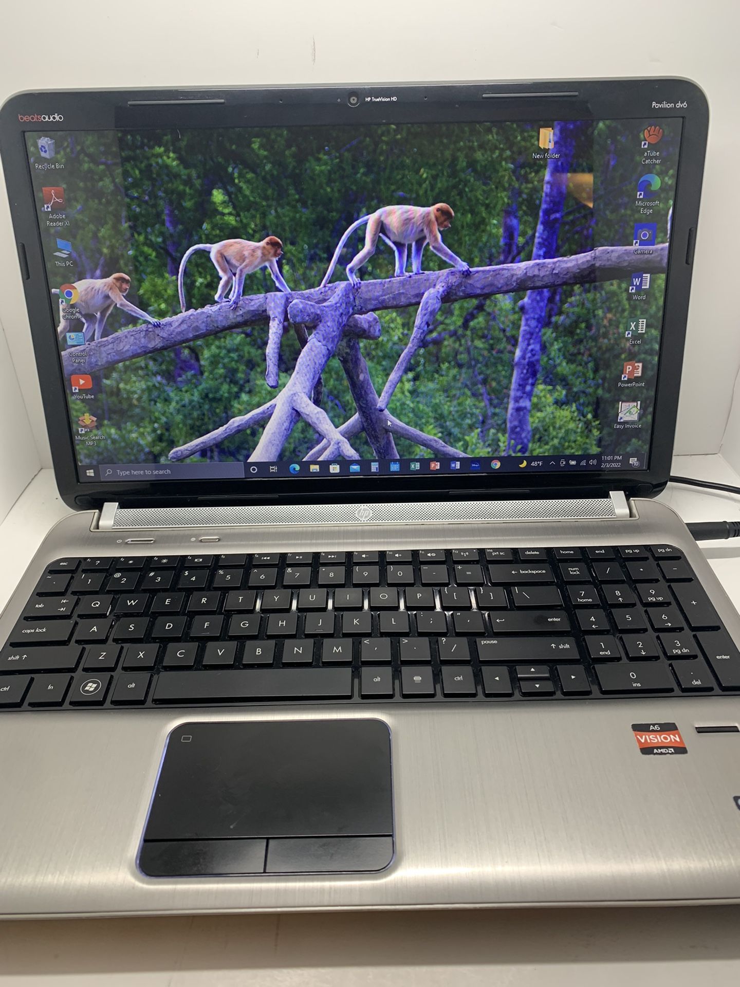 HP DV6…with. BEATS. AUDIO. SOUND ( very clear sound) NOTEBOOK…………AMD A6…3420M. APU with. RADEON ( TM ) ….HD. GRAPHICS. 1500 MHz…4 core(S) 640 GB HHD..… 6.0 GB RAM….. Windows 10 Professional…..15.6 inches screen size….. 64. built…11/29/2014……FULL KEYBOARD ...( WINDOWS 10 PROFESSIONAL …and the REST of the PROGRAMS ARE FRESH AND BRAND NEW) nice..and clean ... no viruses, no spam , 64 bit operation system...WINDOWS 8.1 PROFESSIONAL ...súper nice..and clean ... no viruses, no spam , no tricks everything works 100% súper fast and good..‘conditions .... windows and Microsoft 2019....WORD.... EXCEL....POWER POINT...and 9 more programs ready to use are installed and activated... INCLUDING ORIGINAL CHARGER 🔌 …..PROGRAM FOR MAKING INVOICES FOR ANY JOB OR ANY COMPANY no limit…..ZOOM. APP already installed……..CD ROOM...DVD DRIVE 📀...HDMI.......... BRAND NEW BATTERY FULLY OF CHARGE 100%🔋.... ETHERNET📶.... WIFI.📶📶.....USB PORT...... NO CRACKS.... SD CARD PORT.... READY FOR HOME OR ONLINE CLASSES .....is super fast .... this laptop has been reset it and updated it just normal wear out but everything is working 100% nothing wrong whit it..NO ISSUES...NO PASSWORD NO PROBLEM..NO TRICKS….READY TO USE…..1 week of warranty on the whole laptop…..Is not cover if the device is cracked, if is Wet, or if is infected with viruses or spam I’m not responsible for that…..the whole laptop or the system everything is running very fast and works 100% from inside is like open Box ( brand new)