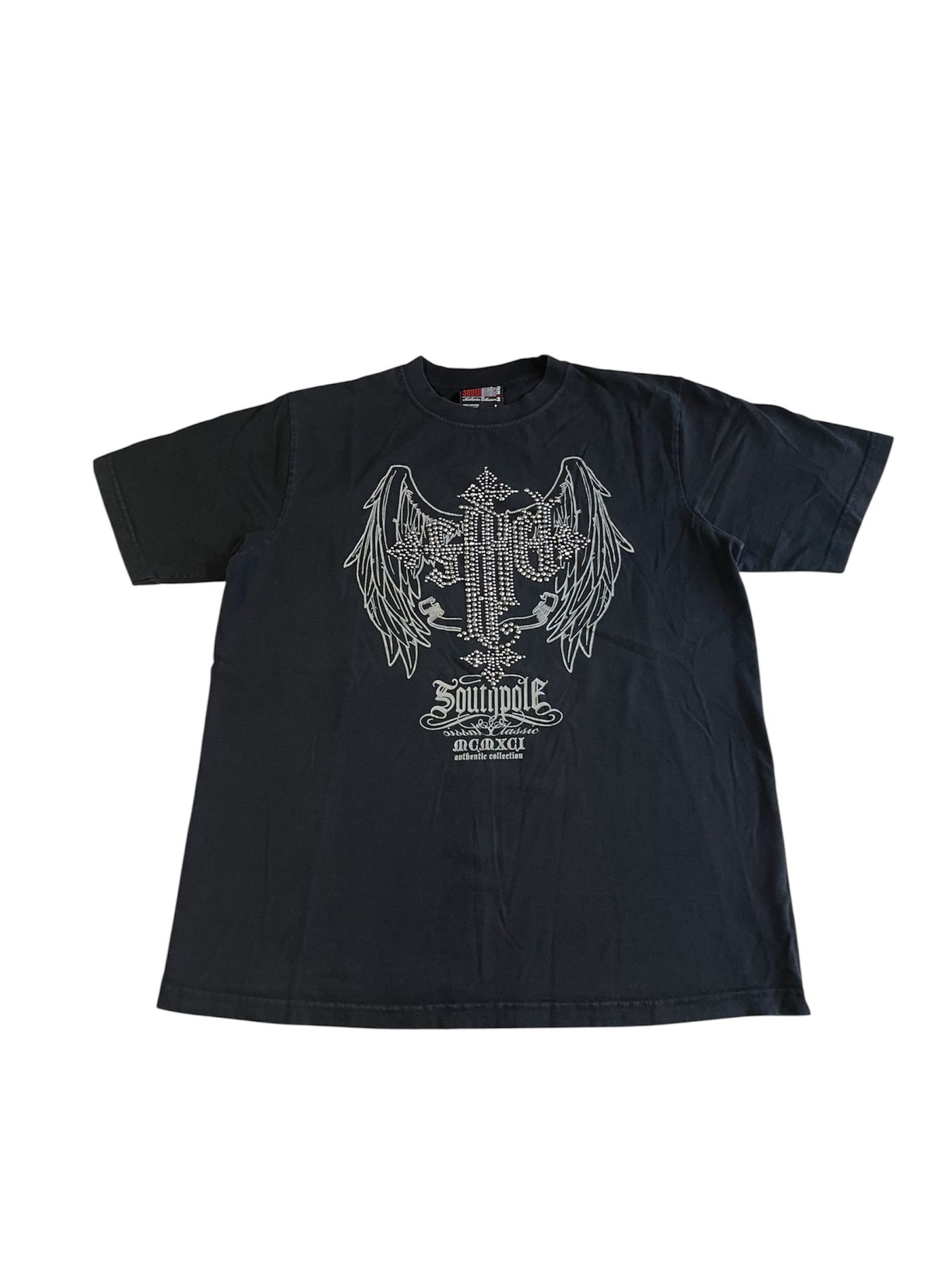 Vintage Y2K Southpole Rhinestone Wings T-Shirt Men’s Large Black Cross Graphic