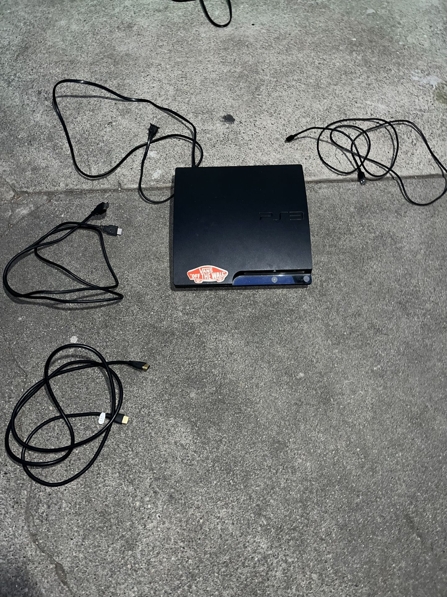 PS3 console complete but just don't have a controller, was my old console so I know it works. Only problem is that while playing games it starts to get loud , but really great for movies or if you just like being on YouTube it's perfect . Comes with a controller charger , 2 HDMI cables and the original power cord . Just missing controller because my dog chewed it up .